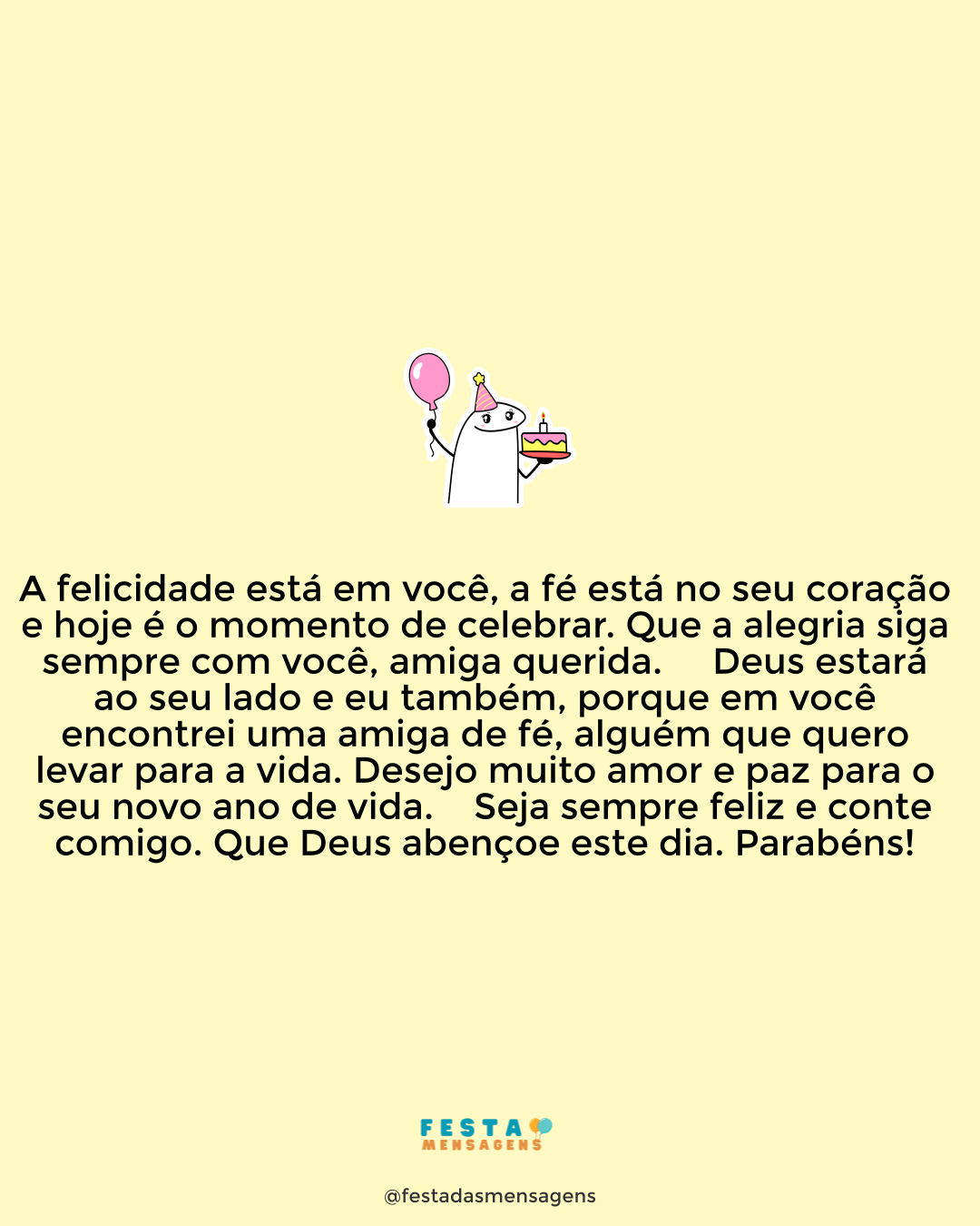 Que a alegria se espalhe por todo seu novo ano de vida, minha amiga. Você é uma pessoa muito especial que cuidou de mim com muito amor e carinho quando precisei e é por isso que agradeço. Nunca perca este seu jeito atencioso e preocupado com os outros. Hoje estou bem por causa de você e espero que todo bem que faz, volte em dobro no seu novo ano. Que seja um ano de alegria, de felicidade e de muito amor. Parabéns!