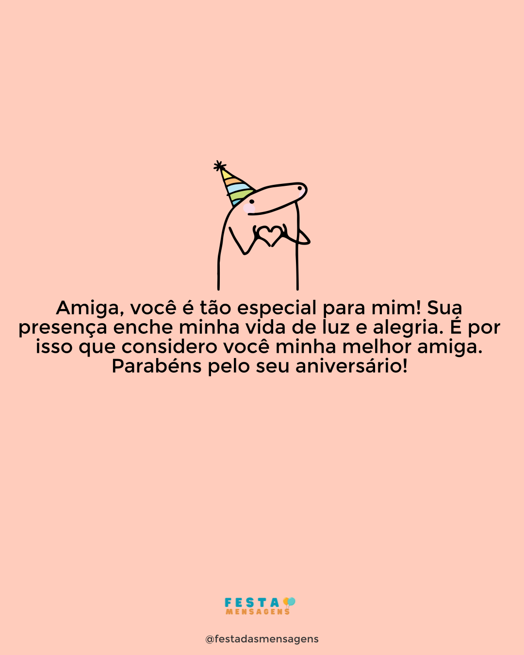 Deus quis que hoje você celebrasse mais um ano de vida, por isso desfrute intensamente desta data. Feliz Aniversário, querida! Você é uma amiga muito especial e merece tudo que existe de bom na vida. Continue atrás do que lhe traz paz, amor e alegria. E lembre-se que estarei sempre ao seu lado. Que Deus acompanhe sempre seus passos e os guie até à felicidade plena. Parabéns, amiga!