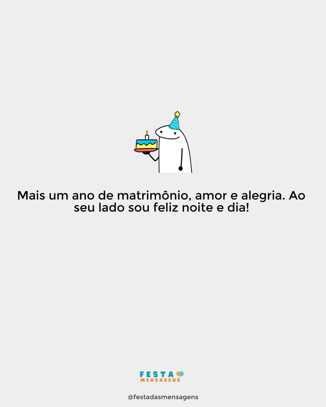 Casar com você foi a melhor coisa que me aconteceu na vida e hoje reconheço que de outra forma não seria tão feliz. Parabéns para nós, amor!