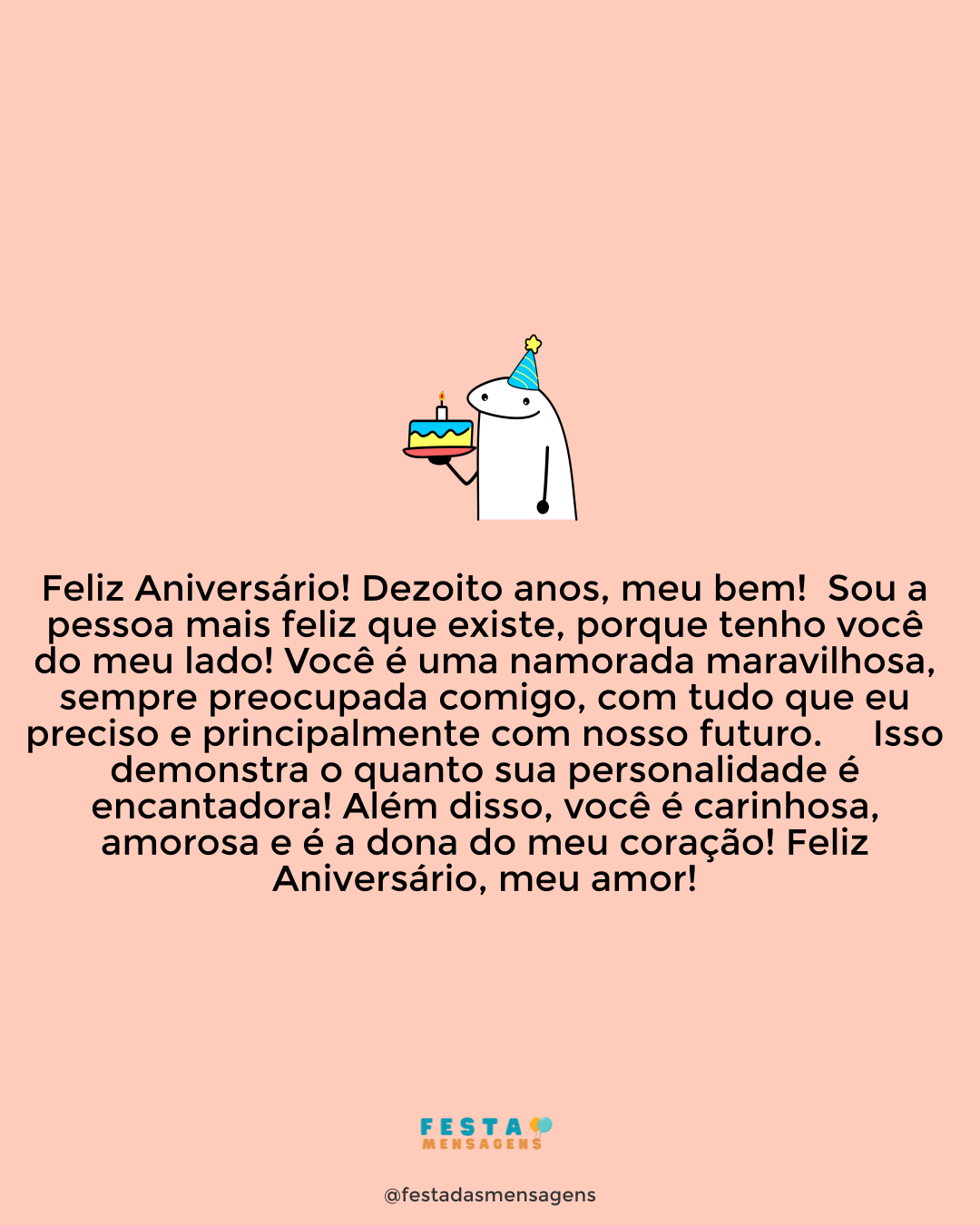 Eu tenho uma paixão, uma ligação; algo forte demais, algo puro, algo eterno. É um amor, um amor por você! Feliz Aniversário, meu filho! Você já é um homem e hoje oficializamos isso mesmo: você completa dezoito anos de vida. Desejo que o dia seja longo e repleto de surpresas lindas e inesquecíveis. Você merece ser feliz! Tenha uma vida cheia de amor, paz e alegria, meu amor. Te amo!