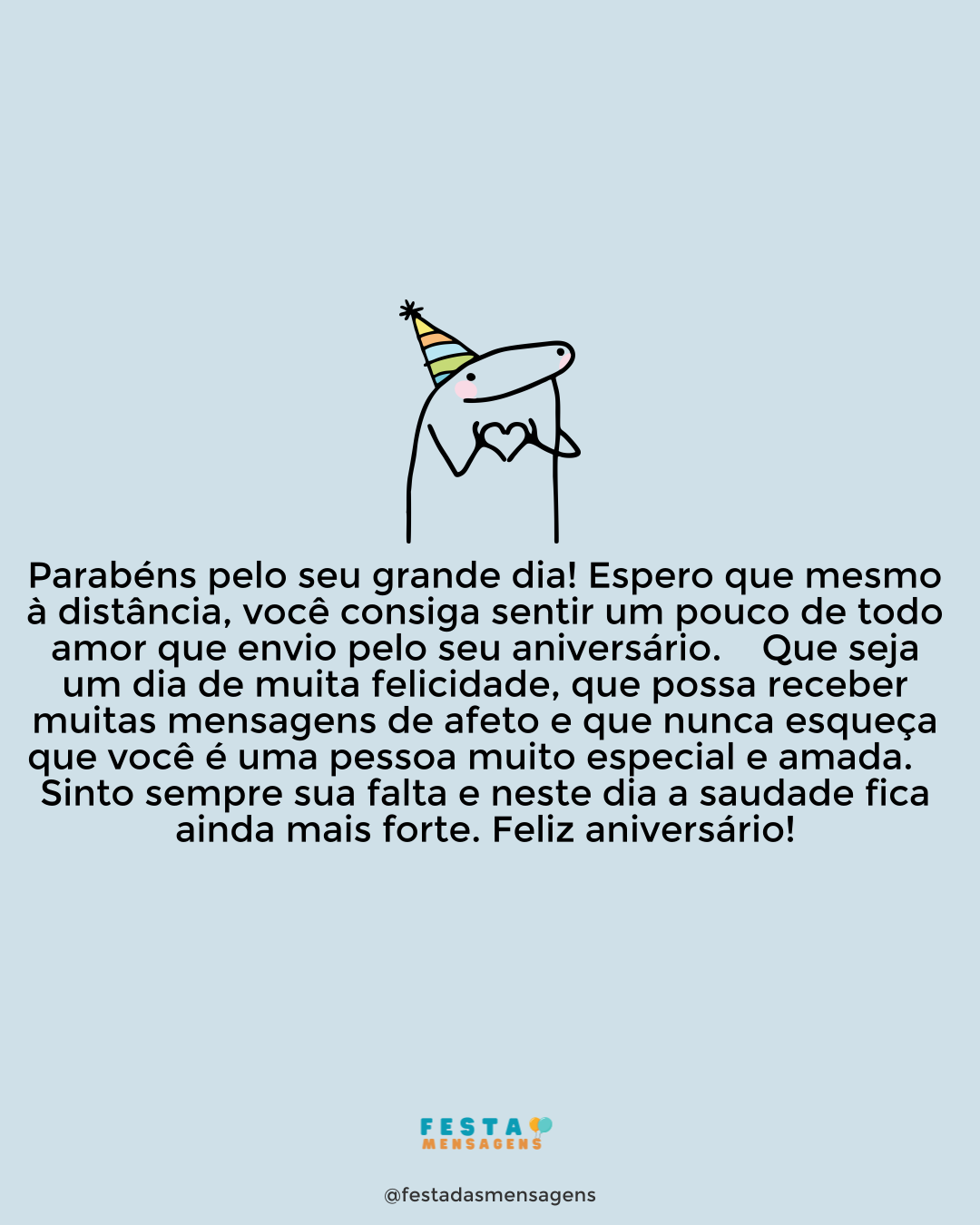 Hoje é seu aniversário e você não está aqui, amiga. Acordei com um peso no peito lembrando de todas as vezes em que comemoramos o seu dia. Dói demais não ter você por perto. Lembro de todos os copos de cerveja que dividimos à meia-noite, as festas em que dançamos até amanhecer, os abraços e carinhos que trocamos para celebrar o seu dia. Lembro de você todos os dias, amiga, mas hoje mais do que nunca. Saiba que nunca vou esquecer da nossa amizade e estarei fazendo um brinde para você em todos os seus aniversários! Parabéns pelo seu dia, amiga. Esteja onde estiver, saiba que estou pensando em você.