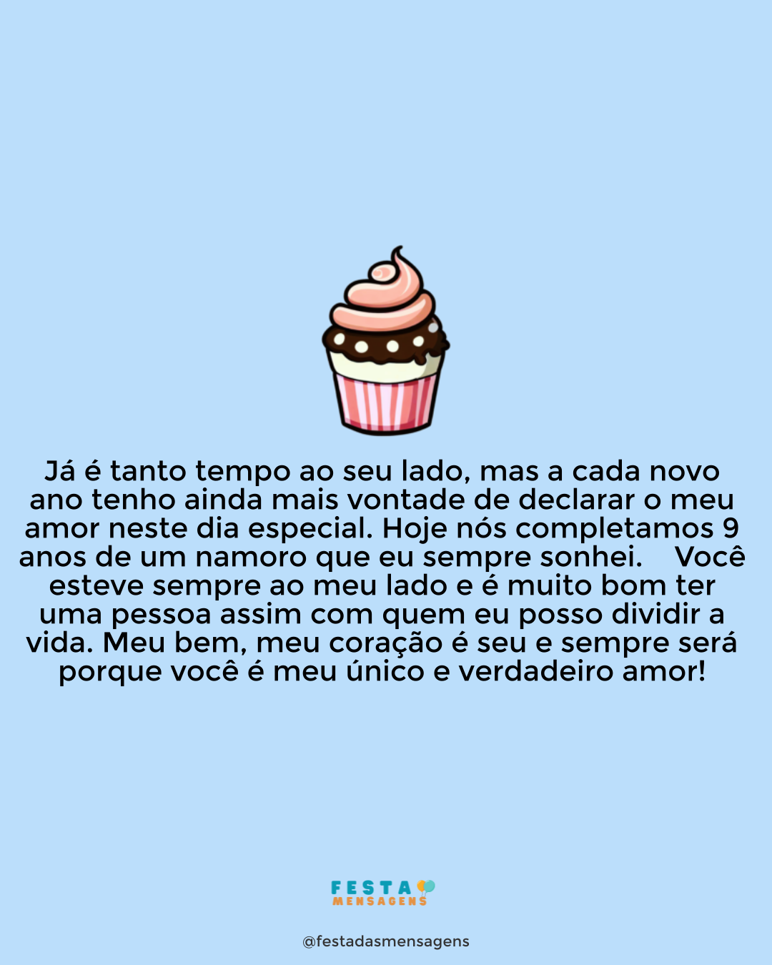 Agradeço a Deus por nos manter juntos ao longo dos últimos 7 anos e por ter feito com que esse tempo fosse recheado de momentos felizes. E a você, meu bem, só posso agradecer por esses 7 anos de namoro em que o amor foi a nota dominante. Parabéns para nós!