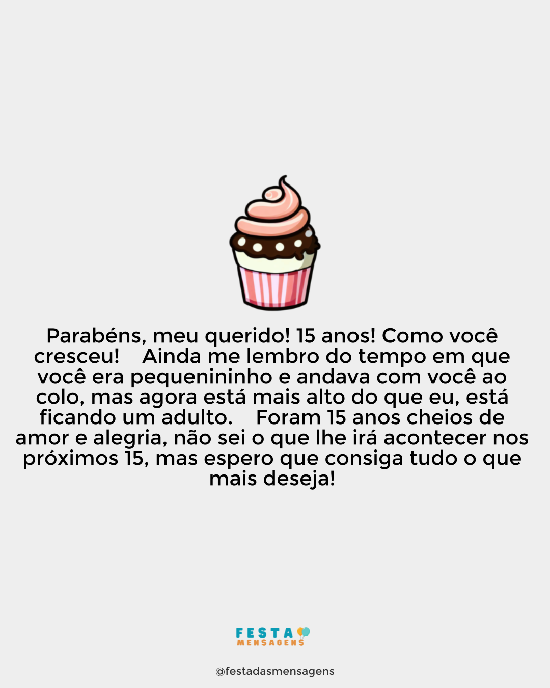 Hoje meu irmãozinho completa um ano de vida e eu não consigo conter a minha alegria por ele. Ele é tudo para mim e torço muito pela sua felicidade. É um sentimento incrível ver um ser humano crescendo diante dos meus olhos, ainda mais sabendo que ele terá em mim uma referência, uma pessoa em quem se espelhar. Prometo estar sempre ao seu lado e espero poder corresponder com todas as suas expectativas. Nada me faria mais feliz que ser tudo que meu irmão caçula merece que eu seja. Irmão, parabéns pelo seu aniversário e não tenha dúvidas de que sempre estarei aqui por você.