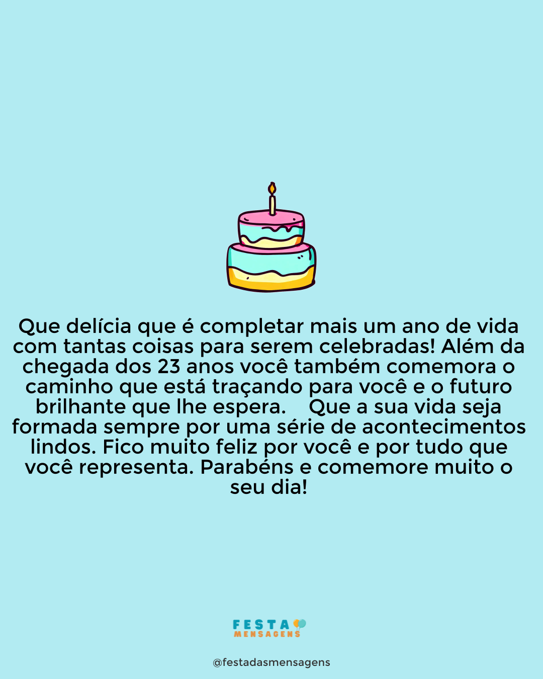 Chegou o momento de celebrarmos mais um ano lindo da sua vida. Parabéns! Que Deus sempre esteja com você…