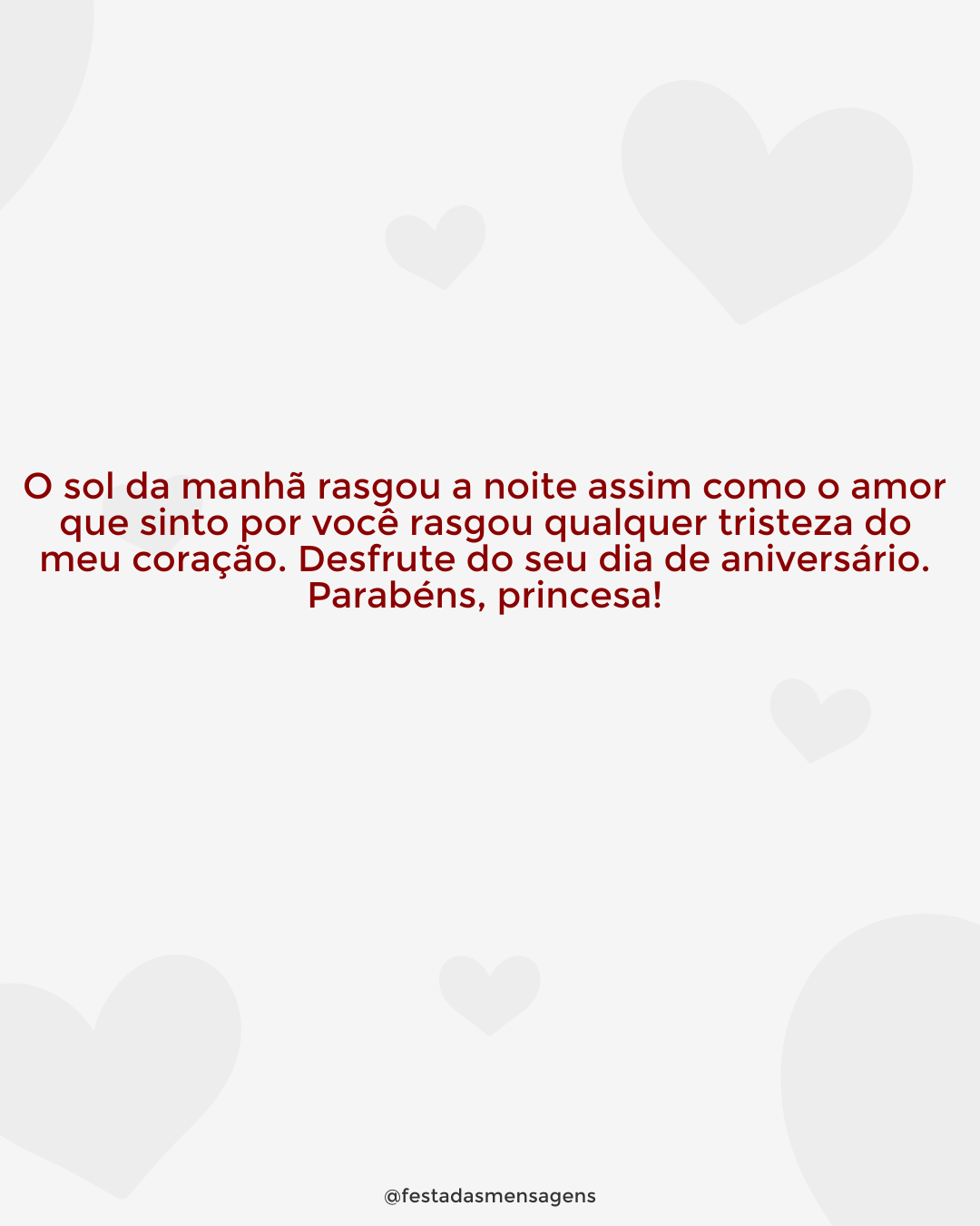 Feliz aniversário! Muitos Parabéns. Hoje é um dia bastante especial. Um dia onde você comemora sua vida de forma de forma inteira. Não há verdade maior que a sua existência e seus atos. Tudo o resto, é resto mesmo. É hora de se orgulhar, meu bem. É hora de sentir que tudo valeu a pena e que tanto está ainda por vir. 15 anos! Que idade tão próspera. Que número tão capaz. Faça tudo para que seu dia sorria em seu rosto. Você merece isso e muito mais. Sua tenra idade é sinal de esperança. Esperança é sempre o amanhã. E creio que o seu ontem é motivo de sobra para lutar e ansiar um futuro brilhante a todos os níveis. De verdade, a vida tem estado sempre do seu lado. Tem feito com que você caminhe pela estrada correta. Sua forma de ser, seu jeito, tudo isso é rico demais. Seu berço foi seu abraço e seus passos tem sido seu despertar para a realidade do mundo e das pessoas. Creio que é por isso que você é tão carinhosa e tão cheia de princípios. Agarre essa nova fase que aí vem com todas as forças e continue seu trilho da mesma forma que tem feito até hoje. Você é o orgulho de todos nós. Por favor, continue fazendo deste mundo, um mundo melhor. Muitos Parabéns! Seja muito feliz, hoje e amanhã.