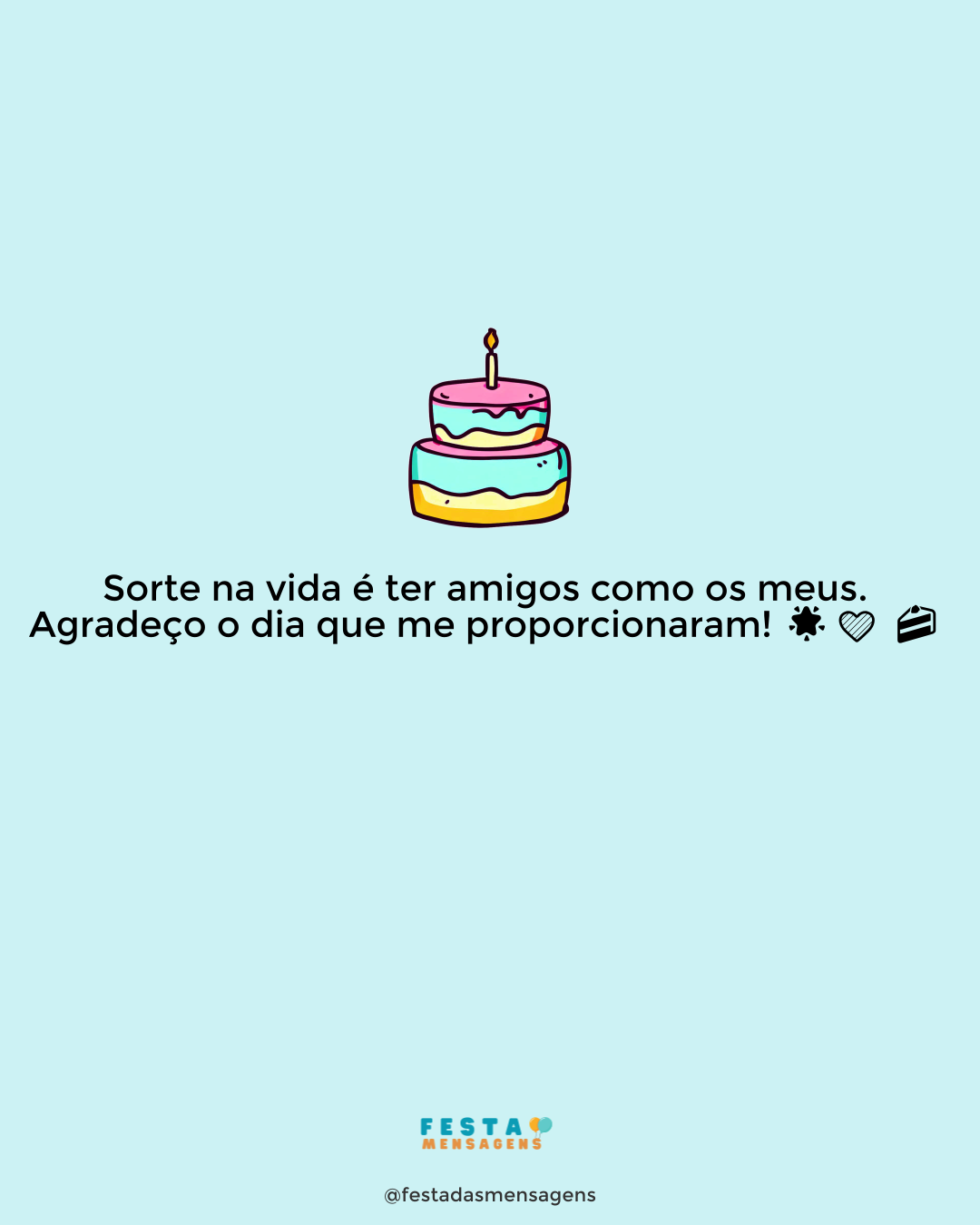 Querida amiga, parabéns! Somos amigas faz tanto e quase que sinto que você nasceu comigo. É uma sensação absolutamente incrível, porque desde que nos conhecemos nos tempos de escola, nunca mais nos separamos. Nossa amizade é verdadeira e eterna, e eu sinto um orgulho muito grande nela. Pode ter certeza que estou muito emocionada por comemorar mais um aniversário ao seu lado. É que não é preciso estar colada a você para estar junto. Isso é mágico e rico, é de ouro. A celebração da sua vida deve ser feita todos os dias e a toda a hora, porém nem sempre ligamos para essas coisas que parecem pormenores, mas são fundamentais porque você é isso mesmo: fundamental para mim e para todo mundo. Por isso, peço a Deus que lhe ofereça um dia cheio de alegria e de amor como sinal de recompensa por tudo que você é para seu semelhante. Para mim, você é muito. Não há amiga como você nem amizade como a nossa. Feliz aniversário!
