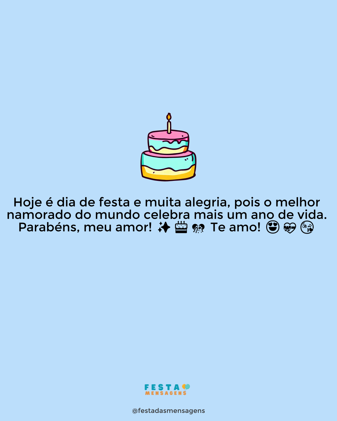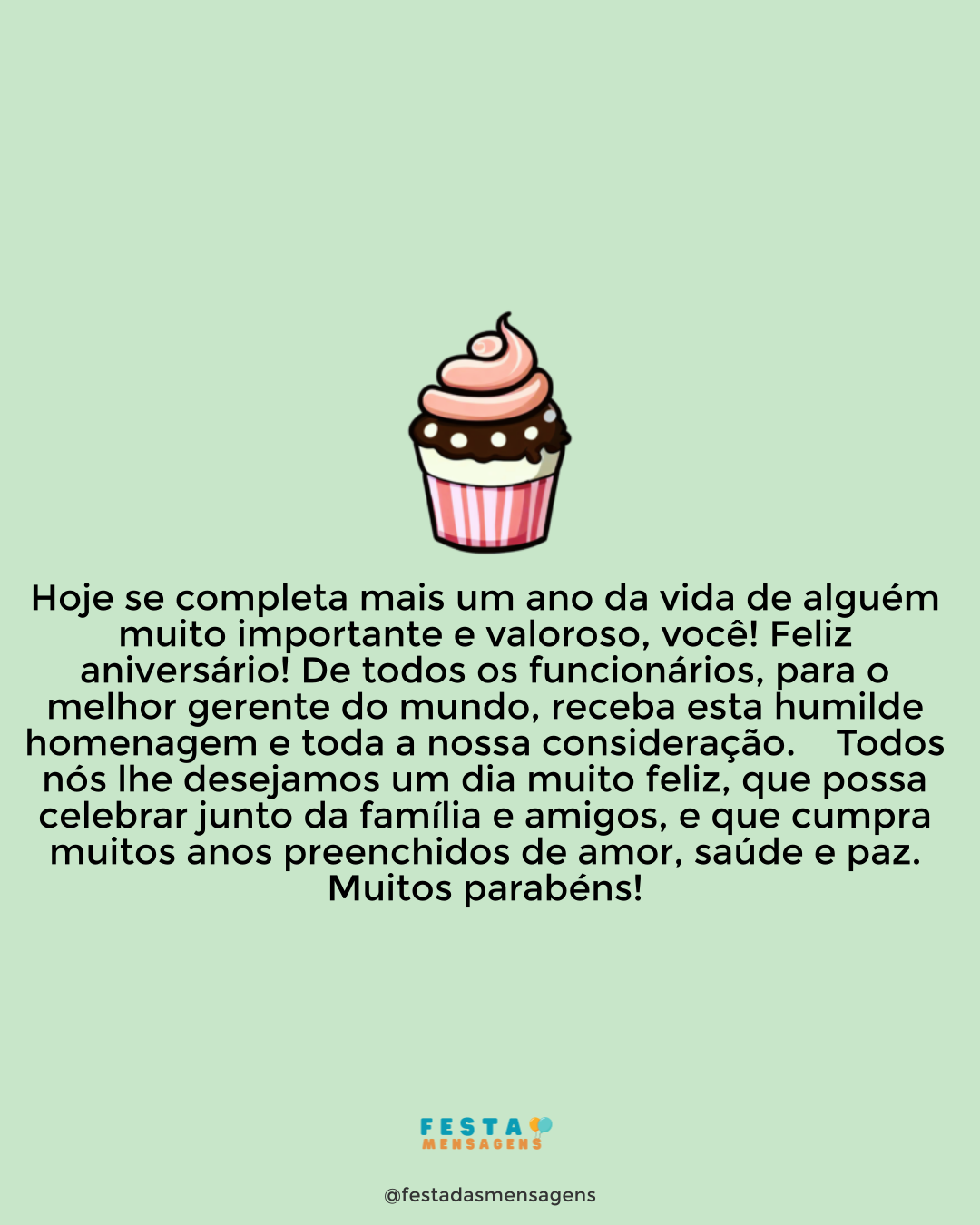 Neste dia muito especial, Deus está olhando para você e todos os anjos do Senhor estão soprando felicidade, amor, saúde e paz em sua direção. Hoje, abra o coração carinhosamente e receba toda bênção que Deus tem para você, saiba agradecer cada nova graça que lhe acontece, agradeça por cada novo dia que amanhece. Você é uma pessoa boa, generosa, e que sabe deixar-se guiar pela palavra e ensinamentos de Deus. Com fé nas palavras do Senhor, você sabe que tudo é possível, porque Deus ama você e é misericordioso. Com a mão de Deus para se apoiar, você é mais forte, você é capaz de tudo, e não tem razões para temer. Eu desejo que neste dia você receba muito amor e carinho dos seus amigos e familiares, e que tenha o seu fôlego renovado para mais um ano de vida que se inicia agora. Parabéns e que Deus te abençoe!