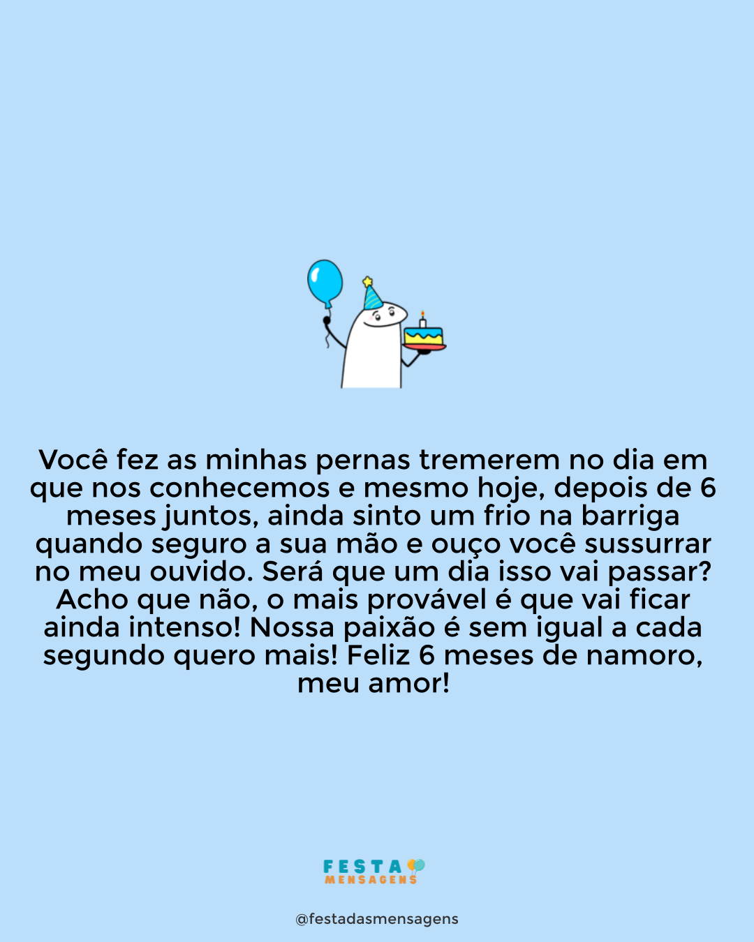 Quando você nasceu, meu bebê, descobri o verdadeiro sentido da vida. Hoje, 5 meses depois, olho para seu rosto e me emociono por saber que ainda temos muito para viver. O tempo está passando depressa e, por isso, quero aproveitar cada segundo ao seu lado. Cada novidade é especial para mim e ver você crescer é a maior aventura da minha vida. Que seu novo mês seja repleto de paz e alegria. Estarei sempre ao seu lado, não importa o que aconteça. Parabéns por mais um mêsversário. Amo você, meu bebê!