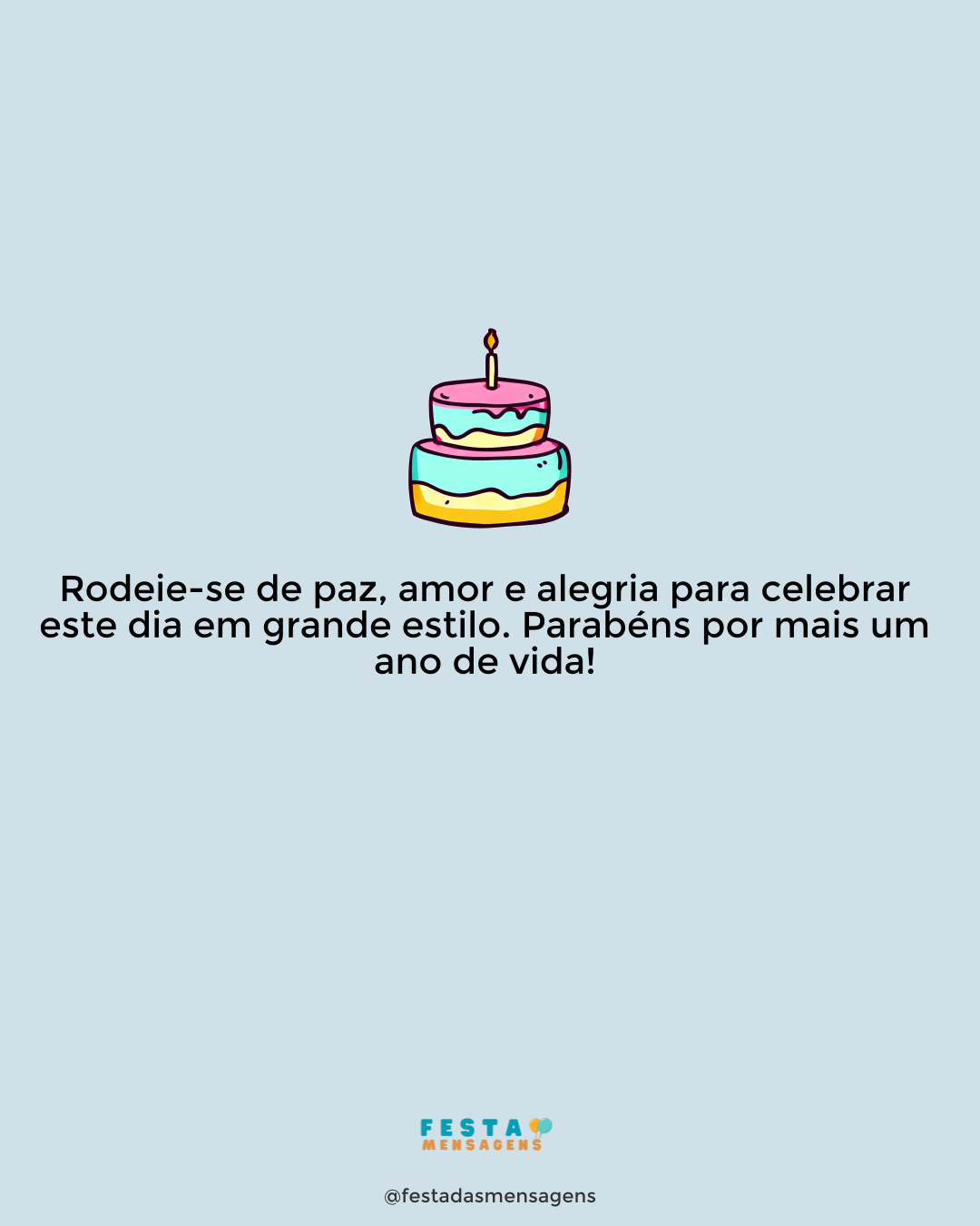 Receba meus votos de um feliz aniversário carregados de carinho. Parabéns, muitas felicidades e mais anos de vida com saúde, paz e amor!