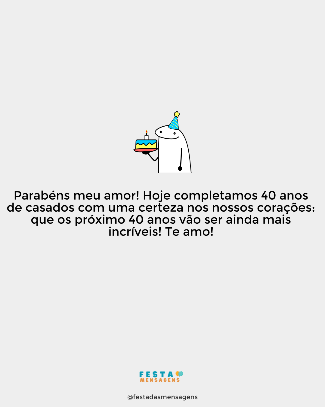 Parabéns, meu amor! Dizem que os homens ficam mais charmosos aos 40 – e eu sou a prova viva de que isso é verdade! Que seja um ano de felicidade e sucesso para você. Te amo! 💙