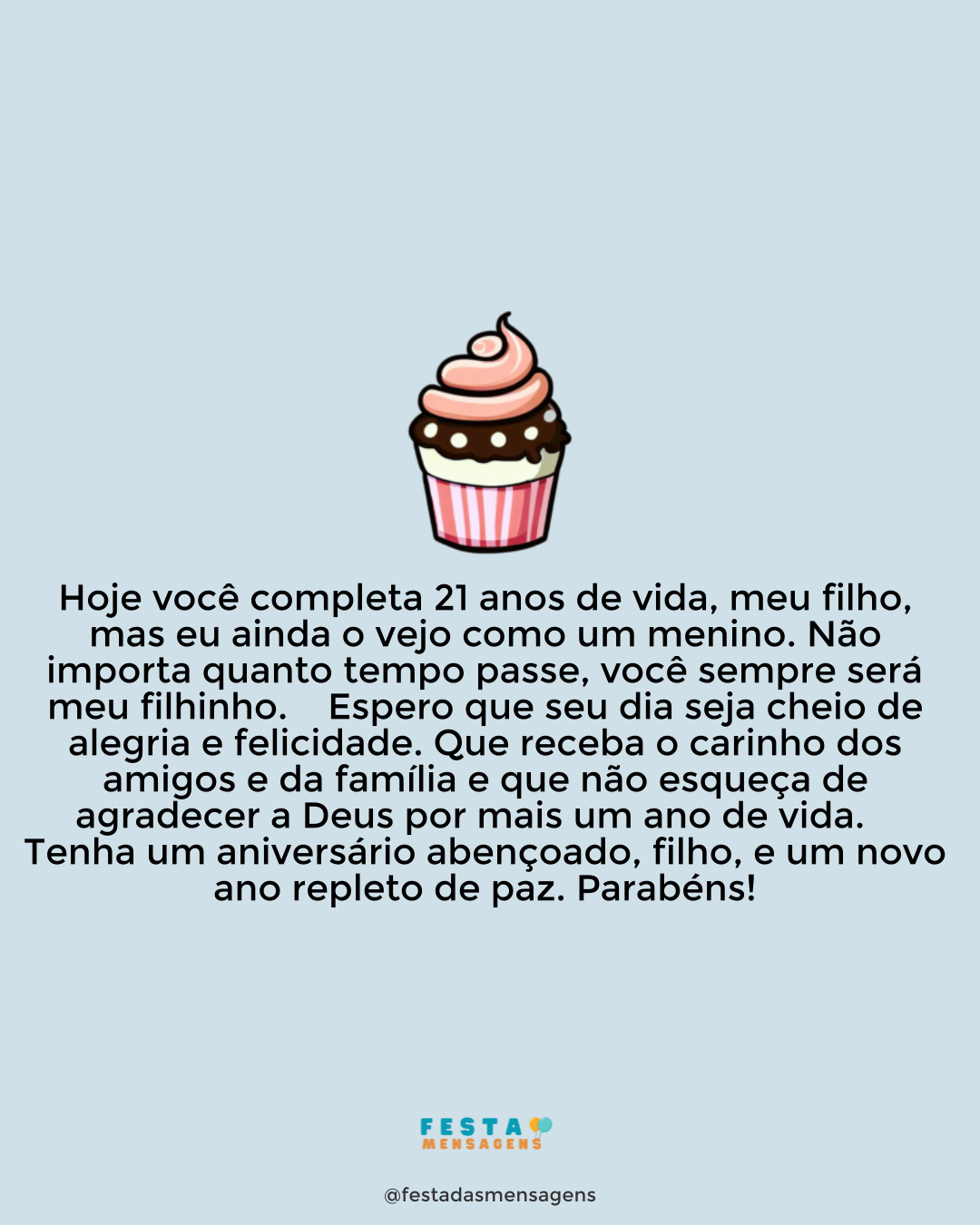 Tenha um feliz aniversário, querido filho! Você era tão pequenino e agora está um homem. Fazer dezoito anos é um marco, mas é apenas o começo da sua vida adulta. À medida que você envelhece a vida fica mais complexa, mas não se preocupe. Você irá descobrir o rumo que lhe deve dar. Por vezes é fácil saber o caminho a seguir, outras é um pouco mais difícil. O melhor conselho que lhe podemos dar é para escutar o seu coração e fazer o que sentir que é o correto. A vida é sua, por isso, não deixe que sejam os outros a ditar o seu caminho. Só se vive uma vez. Tenha uma vida incrível, querido filho!