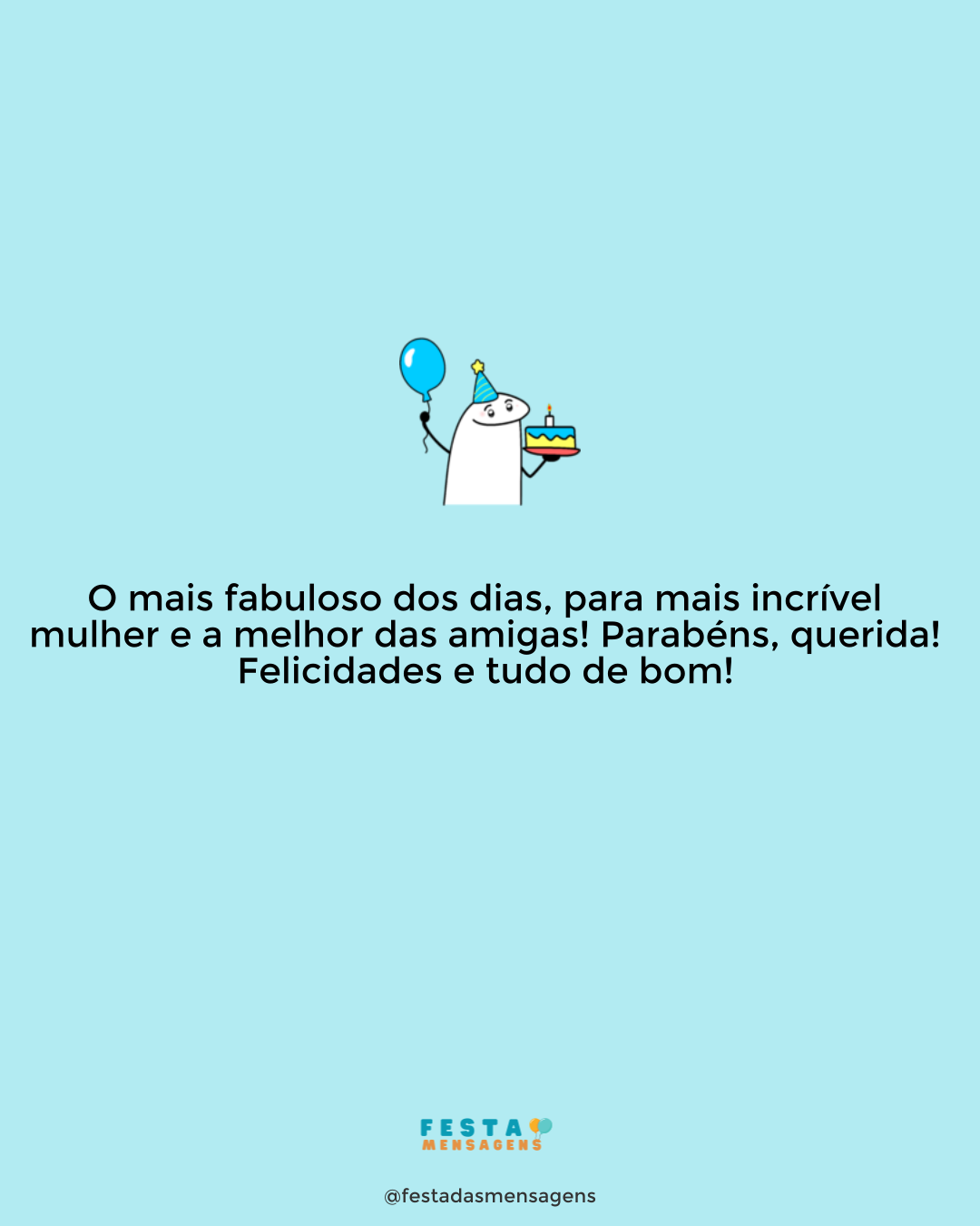 Hoje você está completando mais uma aniversário e eu quero lhe prestar uma homenagem. Você é não só uma das minhas mais antigas e melhores amigas, como também é a mais divertida. Foram muitas as risadas que você me proporcionou, muitos momentos de diversão e de boa disposição. Obrigada por todos os sorrisos que despertou no meu rosto e por tanta alegria que me fez sentir! Feliz aniversário, querida amiga!