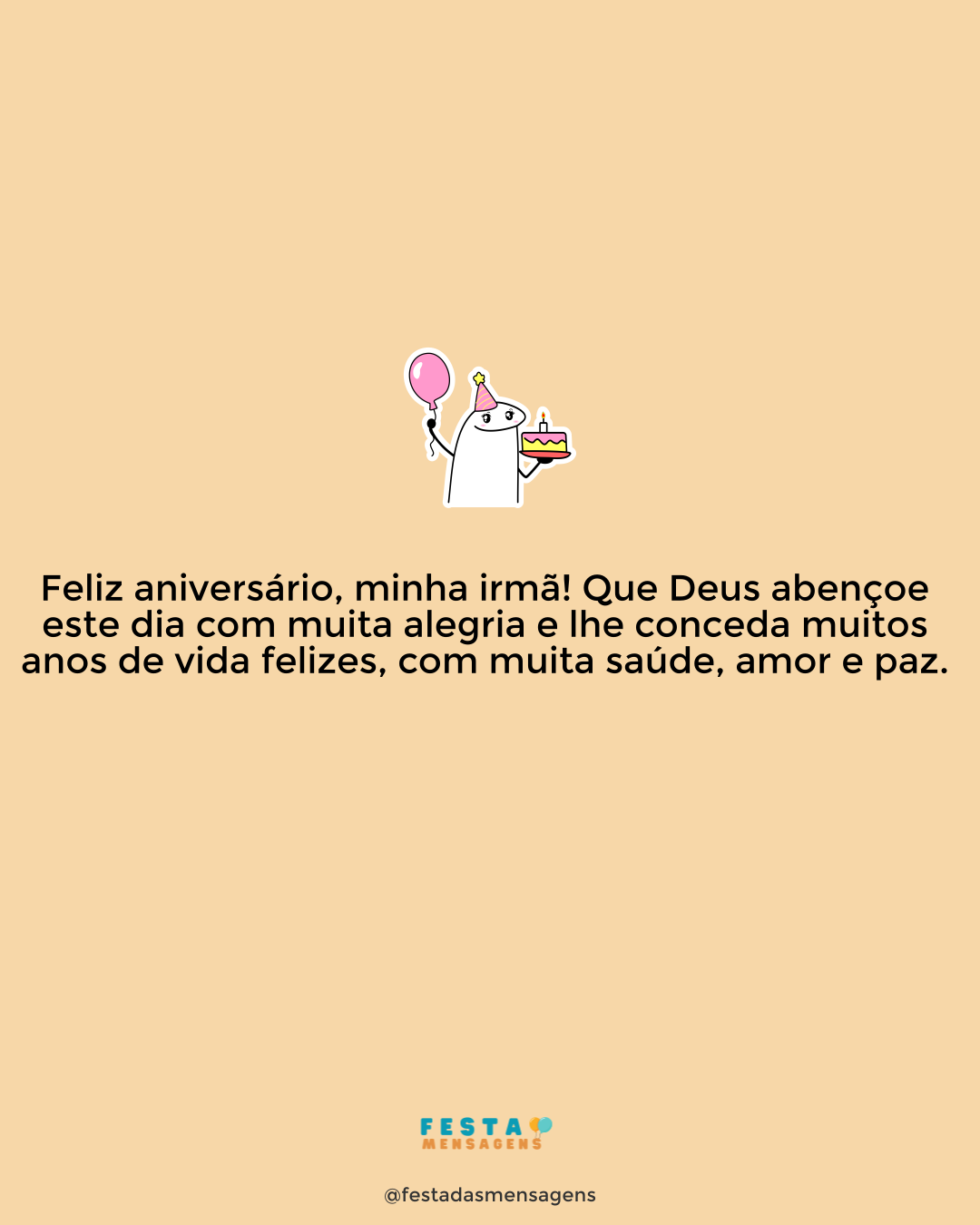 Querida amiga, você é uma das pessoas mais inspiradoras que conheço. Tenho muita sorte em contar com sua amizade, com seu carinho e verdade. Minha irmã em Cristo, que seu dia de aniversário seja simplesmente maravilhoso! A vida e a fé nos ligaram. Agradeço a Deus por esta união abençoada, por ter me apresentado a alguém com um coração tão bom e generoso como o seu. Só lhe peço que aproveite este dia e se divirta, porque você merece toda bondade que existe neste mundo. Querida irmã em Jesus Cristo, tenha um aniversário lindo.