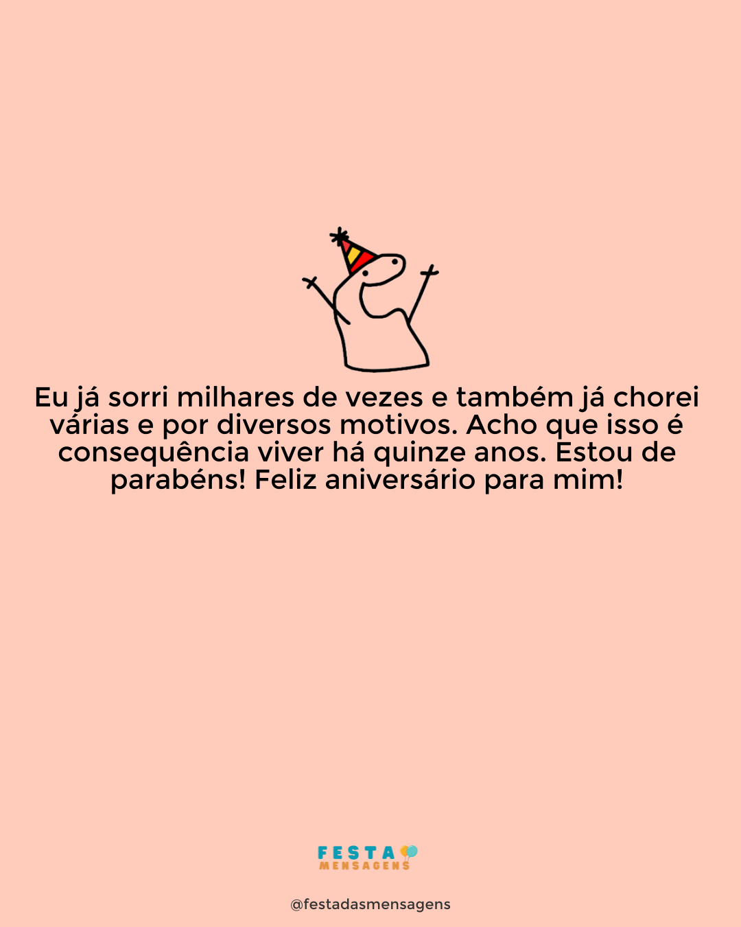 Hoje chego em um novo ano de vida com muita paz e amor no coração. A verdade é que eu estou de parabéns por tudo que vivi. Encarei desafios, trabalhei em mim mesmo e sei que hoje estou melhor. Acho que aprender a me valorizar é algo importante e é por isso que hoje me entrego a um novo ano. Quero estar em paz comigo mesmo, celebrar comigo e viver com muito amor próprio. Parabéns para mim e pelo que vivi até aqui. Que venha um novo ano incrível!
