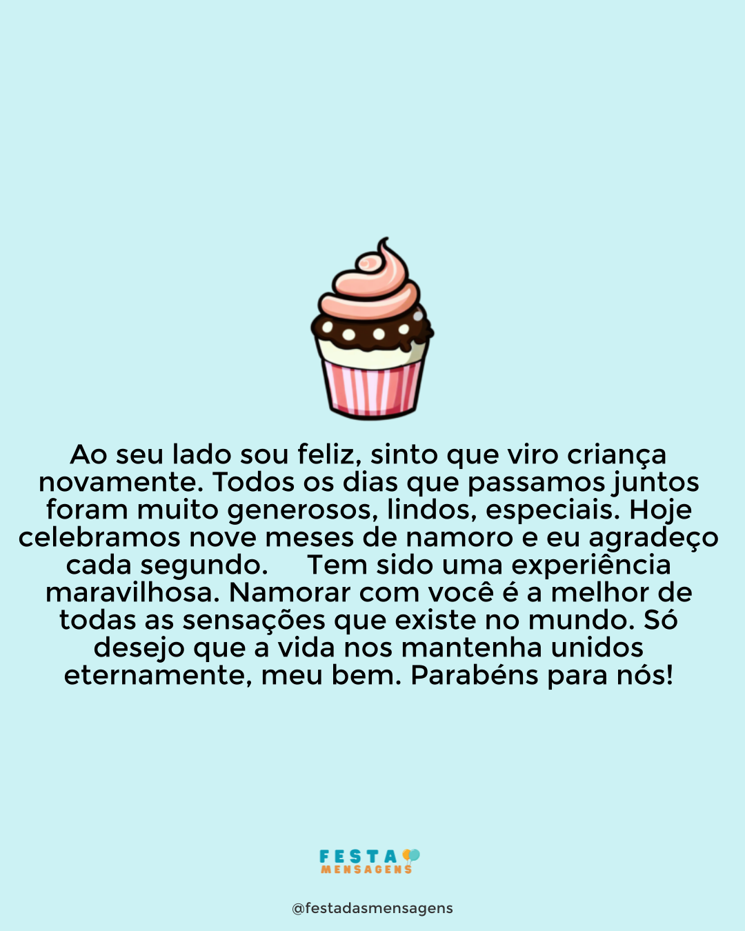 Todos os dias ao seu lado são de festa para mim, mas este tem um valor ainda maior e mais especial. Parabéns pelo sexto ano do nosso lindo e apaixonante namoro! Sinto que estamos mais ligados que nunca, que nada pode nos separar! Meu amor, sou tão feliz ao seu lado que às vezes só desejo que o tempo pare para eu ficar admirando a bênção que é ter você na minha vida! Te amo muito, meu bem!
