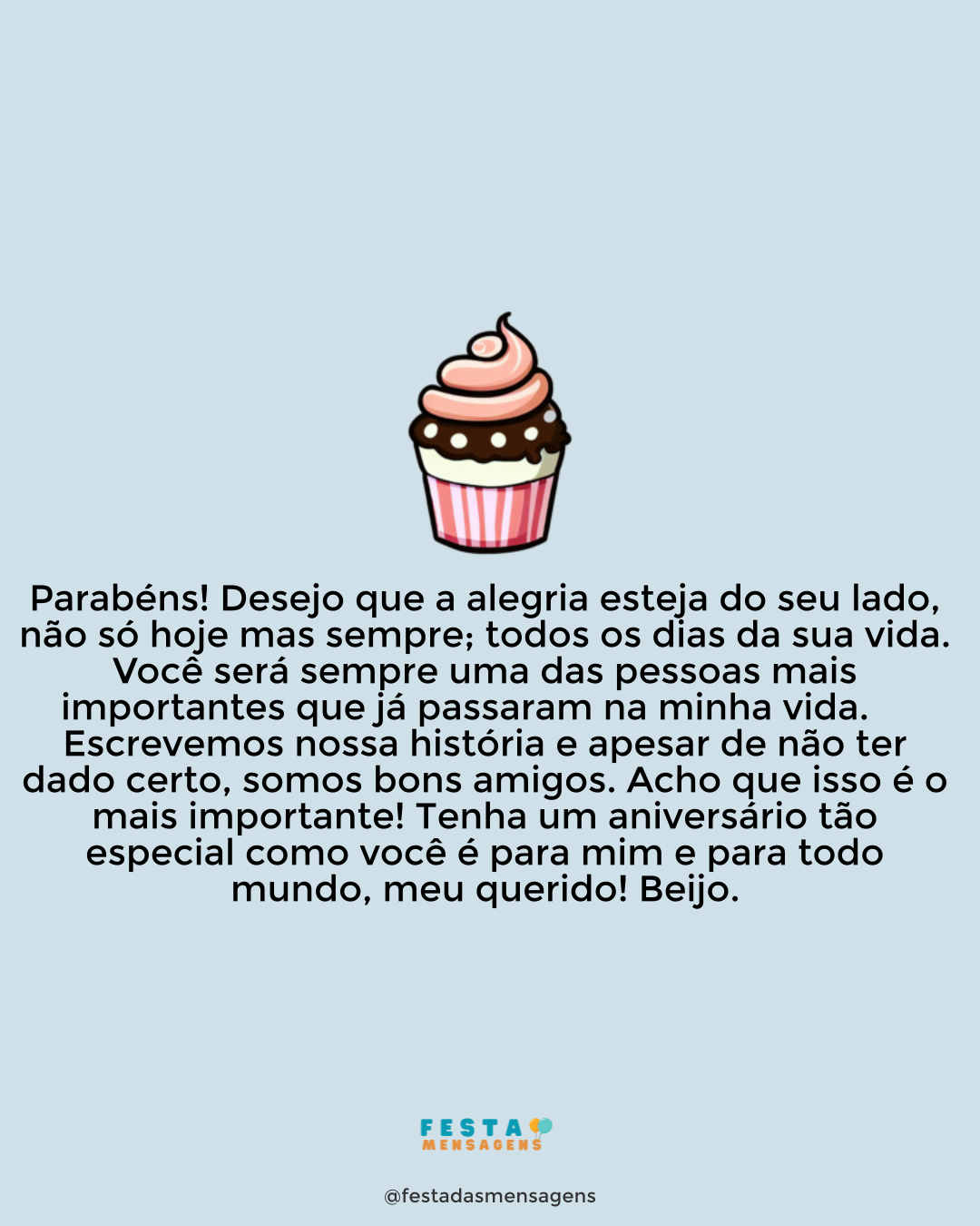 Quero lhe desejar um dia muito especial, querida ex(traordinária)-cunhada! Como cunhada você revelou ser uma mulher gentil e carinhosa , mas foi quando passou a ser minha ex-cunhada que conheci o lado corajoso e incansável de uma mulher extraordinária. Sempre senti uma grande admiração por você, mas desde que se separou do meu irmão que não tem parado de crescer. Mostrou que é uma mulher com garra, que não desiste perante os desafios que a vida lhe tem imposto e que vai à luta para conseguir atingir os seus objetivos. Espero que o seu dia de aniversário seja muito feliz, assim como todos os dias da sua vida, querida ex-cunhada!