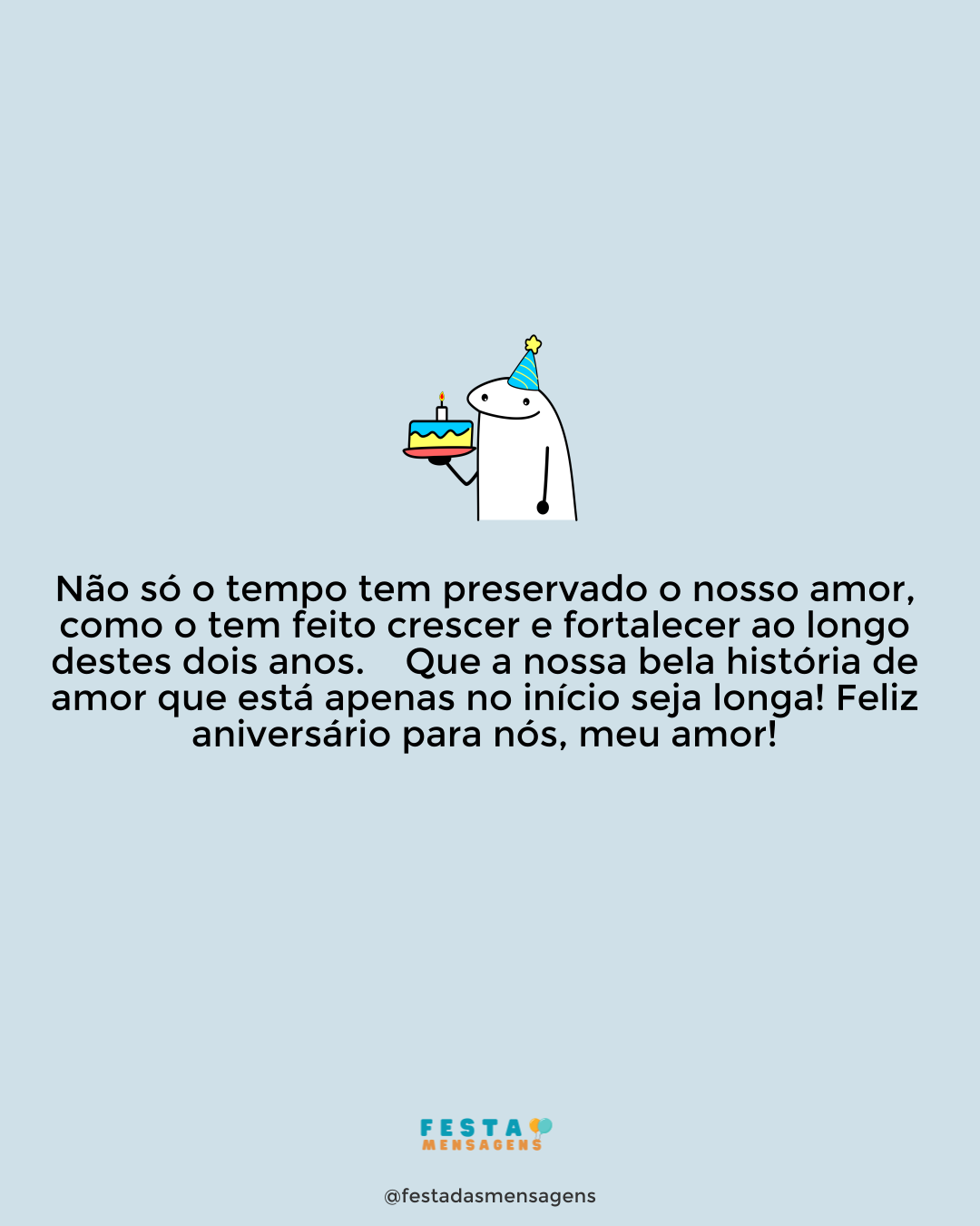 Quando começamos a namorar eu tive a sensação de que não estava entrando em qualquer relacionamento, que aquele momento seria o mais importante da minha vida. Hoje, 7 anos depois, sei que meu sentimento foi verdadeiro. Você não é só o amor da minha vida. Você é a pessoa com quem eu quero dividir tudo, das risadas mais altas até o choro mais doloroso. Todos os dias, todas as horas. Meu amor, sou tão feliz ao seu lado hoje quanto estava no dia que começamos a namorar e isso é sinal de que o nosso amor foi feito para ser eterno. Feliz 7 anos de namoro para nós! Amo muito você!