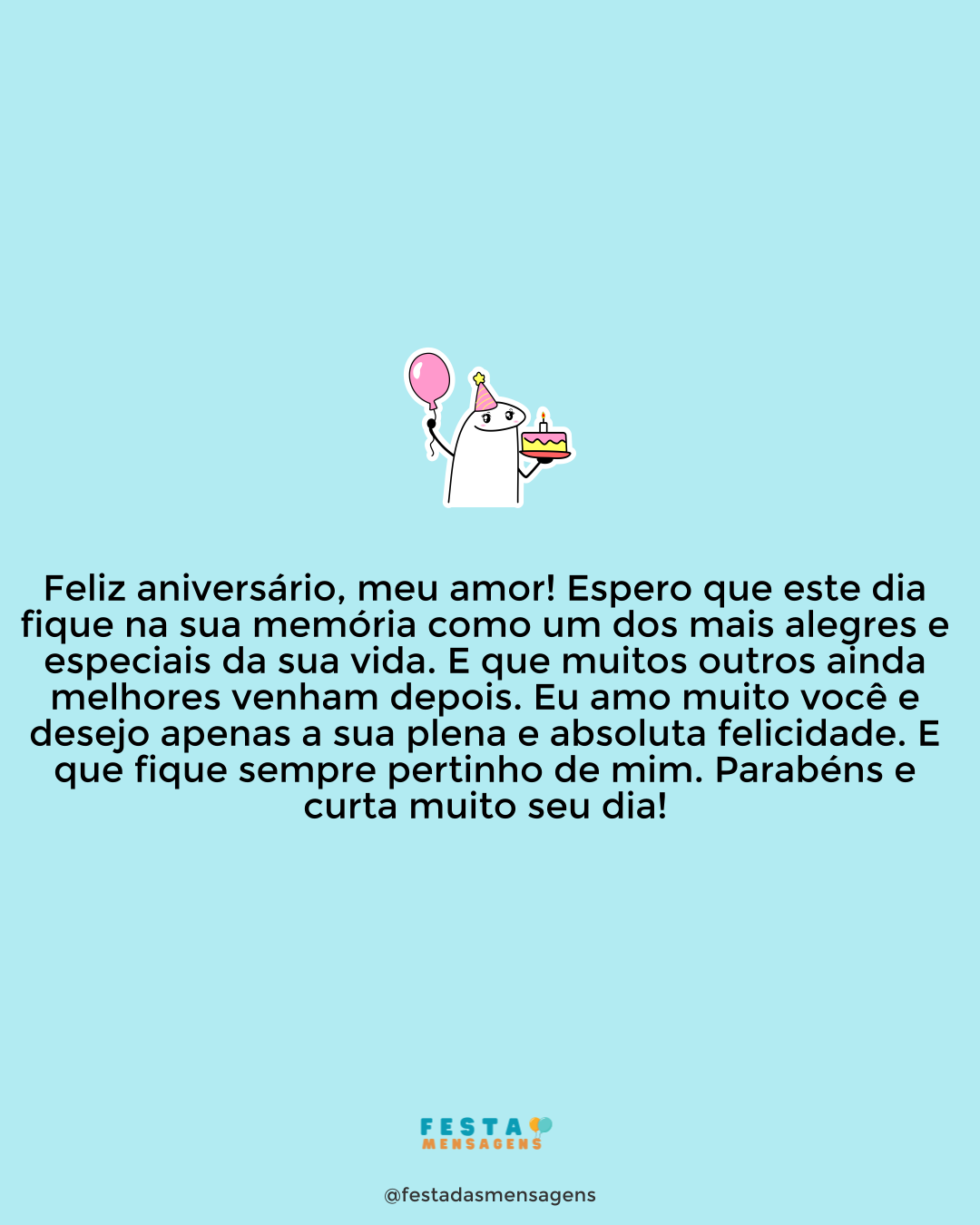 Não preciso de motivos para lhe cobrir de abraços e beijos, mas como hoje é o seu aniversário vou usar isso como desculpa para lhe amar ainda mais. Parabéns, meu marido e alma gêmea. Eu olho para você e vejo a pessoa com quem eu quero passar o resto da minha vida. Um homem que não só me faz feliz, mas também me ajuda a crescer como mulher e ser humano. Pode acreditar que eu sou tão apaixonada por você hoje quanto no dia em que lhe conheci. Meu amor, tenha um dia lindo! Feliz aniversário!