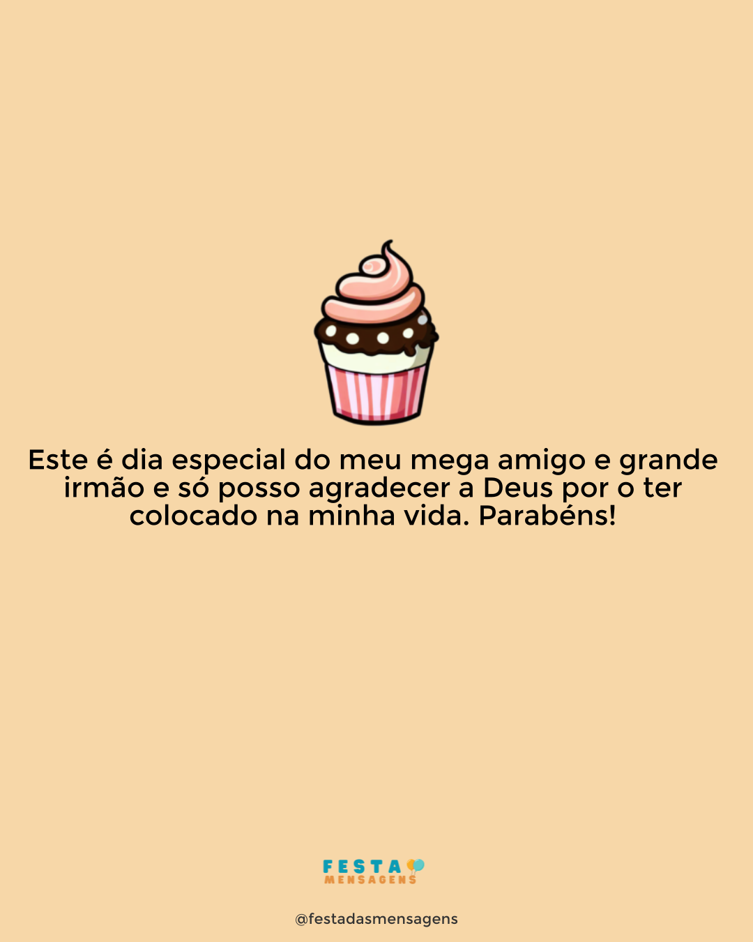 Hoje é o seu aniversário. Cada dia que vivemos é um agradecimento a mais, por tudo o que recebemos do Senhor. Querido irmão, eu oro para que tenha uma vida longa para ser vivida e que o Senhor seja um mestre a guiar seus passos para o bem, e para o amor a todos que o cercam. Ouça com atenção a palavra da verdade e da salvação, somente ela pode nos trazer a felicidade. Jamais afaste Deus do seu coração, pois Ele é o nosso verdadeiro e único caminho. Feliz aniversário, meu irmão, na paz de Cristo!