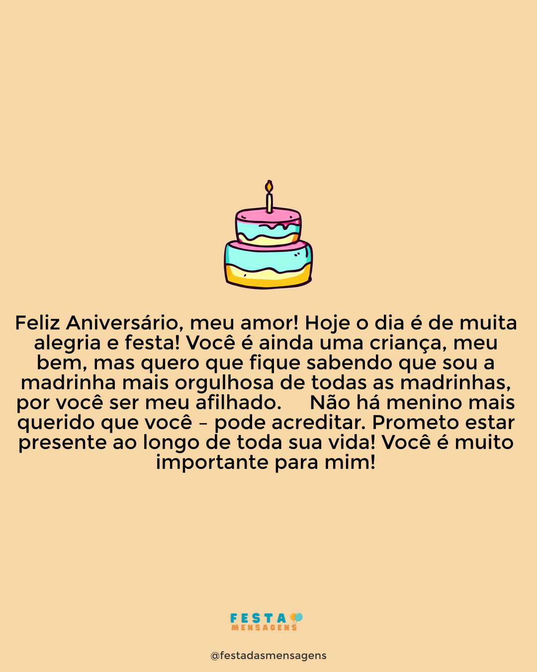 Feliz Aniversário, minha filha! Você é tudo para mim! Não conheço outra forma de felicidade se você não estiver por perto. Não compartilhamos o mesmo sangue – é verdade. Mas somos loucos um pelo outro. Você é minha filha e eu sou seu pai. E nada mais interessa. Prometo estar sempre do seu lado para todos os momentos, para apoiar em todas as decisões, para ajudar a guiar você no seu caminho. Tenha um dia lindo, minha filha! Beijo.