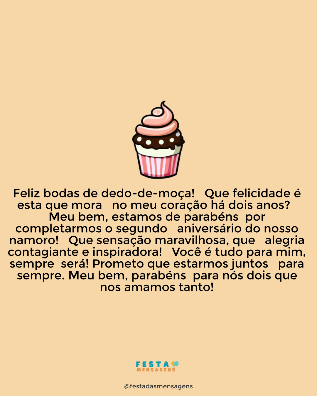 Você, que é meu namorado e amor eterno, está de parabéns! Meu bem, você sabe quão profundo é meu sentimento por nós dois, pelo nosso relacionamento e por tudo aquilo que temos para viver. É algo que não dá para explicar, é uma energia contagiante que irradia do meu coração rumo ao seu. Neste seu dia, eu lhe prometo que nada irá mudar: eu sempre irei te amar. Feliz aniversário!