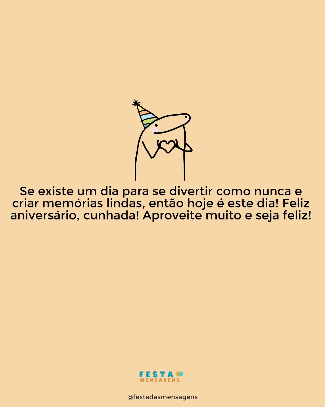 Feliz aniversário! Além de você ser uma sogra incrível que adoro com todo meu coração, é também uma mulher de armas, uma autêntica guerreira e minha grande inspiração. Eu lhe desejo uma jornada de festa com muita alegria, momentos incríveis passados em família e com amigos e, é claro, alguns presentinhos. Tenho muito orgulho em ter uma sogra tão especial como você! Aproveite muito seu dia. Parabéns!