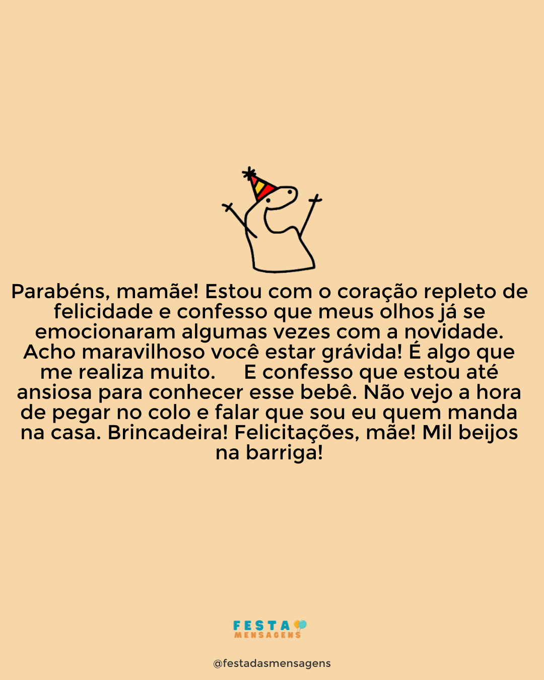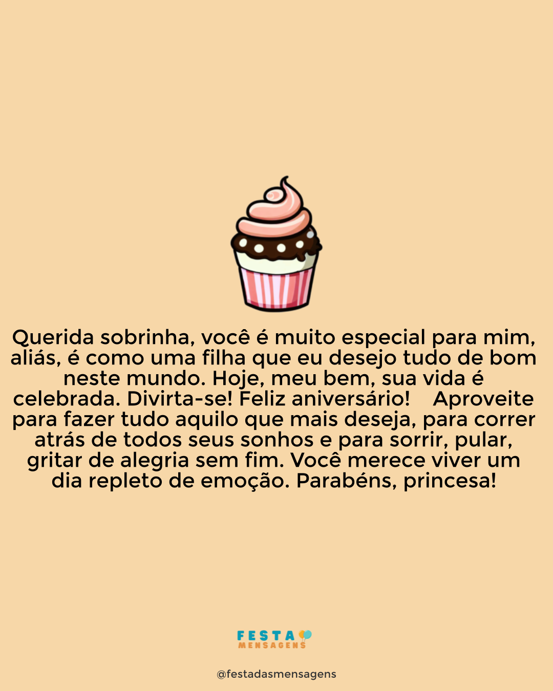 A festa vai começar! Cunhada, comadre e grande amiga, parabéns por mais um ano cheio de histórias maravilhosas para recordar, mas também de provações, alegrias e vitórias! Espero que se divirta muito, especialmente ao lado de quem mais ama. Você é uma pessoa incrivelmente linda que merece tudo que existe de belo na vida, por isso, prepare-se para todas as surpresas, hoje e sempre. Feliz aniversário, querida!