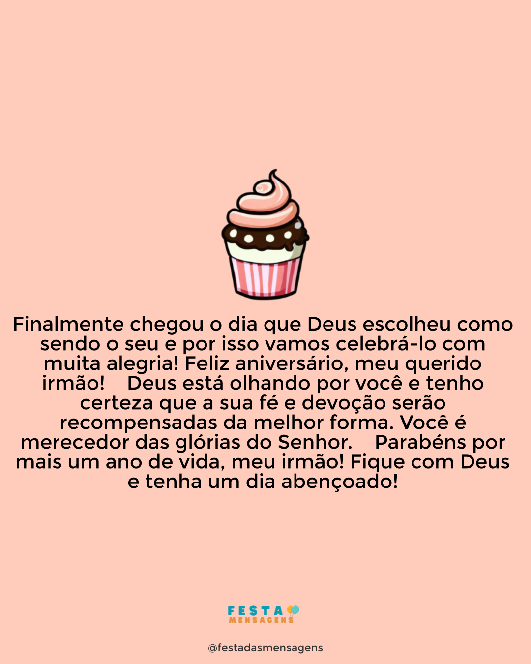 É incrível tudo que nós já passamos até aqui. São tantas lembranças, tantas histórias para contar. Neste seu dia especial, fico lembrando de quando nossa irmandade começou. Não nascemos na mesma família, mas é como se fosse. Você significa muito para mim e não posso deixar de me emocionar em passar mais um aniversário ao seu lado. Que seu dia seja repleto de sorrisos sinceros e que o seu novo ano de vida traga milhares de alegrias. Você é uma pessoa muito especial e tenho certeza que levaremos essa amizade para o resto das nossas vidas. Agradeço por cada momento compartilhado, meu irmão do coração, e desejo o melhor aniversário de todos para você!