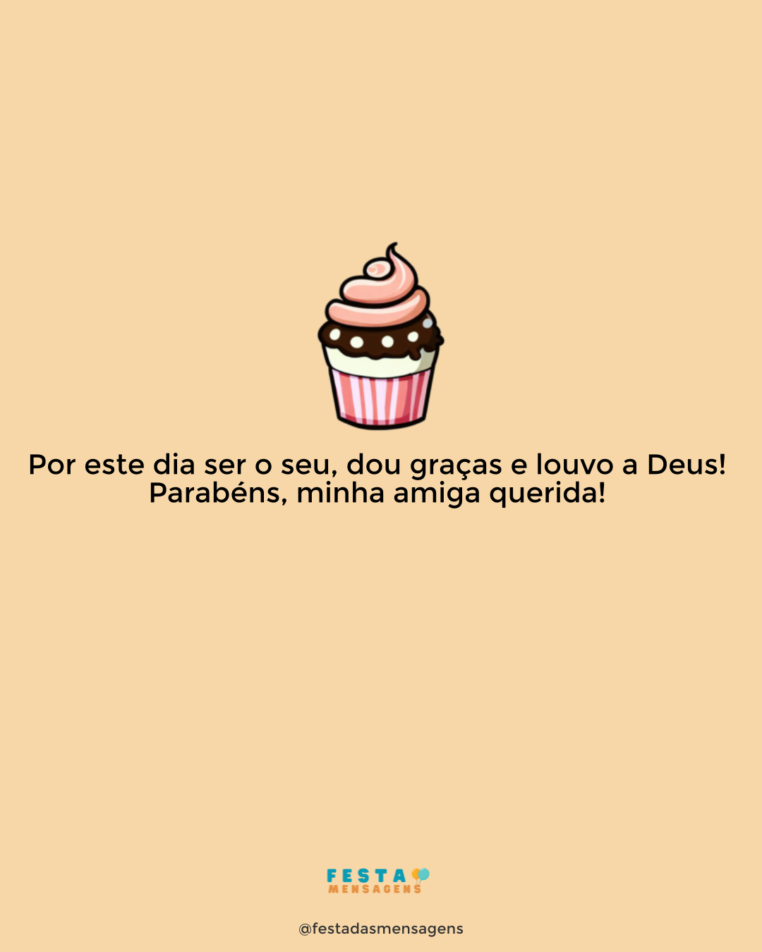 Sabe o que é ser a melhor? É ser somente a que tem as melhores qualidades que qualquer outra. Portanto hoje posso atestar que você é, sem nenhuma dúvida, minha melhor amiga, é simplesmente melhor que qualquer outra! Por isso o que quero lhe desejar neste dia é exatamente tudo o que desejaria a mim: muita saúde, beijos e abraços, que todos, mas todos mesmo, os seus sonhos se realizem e que a tristeza passe bem longe de você. Muitos e muitos anos de vida, minha amiga. Amo você! Parabéns!