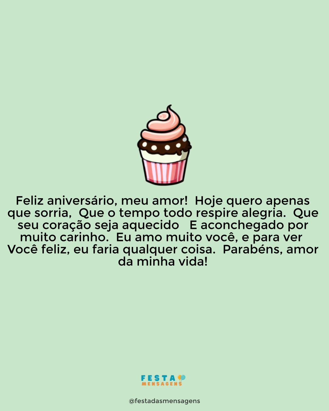 Feliz Aniversário, meu amor! Adorava passar meu dia com você, sabe? Sinto saudades suas, de seu toque, desse abraço saboroso que sempre entusiasma meu coração. Apesar da distância que nos separa, você continua um namorado presente. É como se sentisse seu respirar em meu ouvido todo amanhecer! Quando voltar, vou roubar você só para mim durante uma longa temporada! Tenha um dia lindo com a lembrança que sou feliz com você!