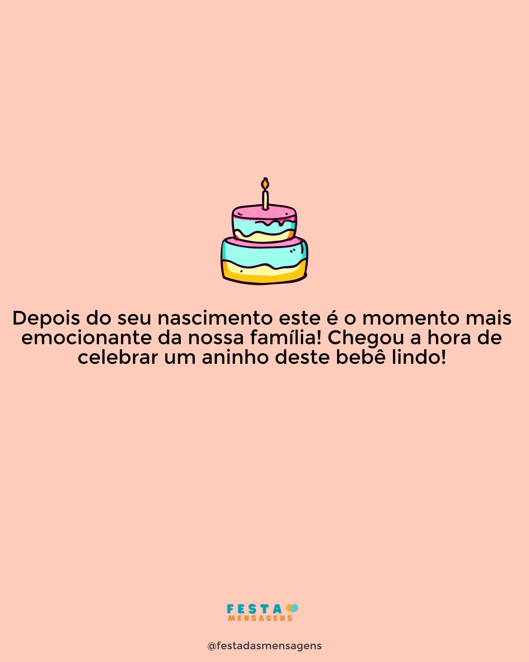 Parabéns! Hoje é um dia muito especial, e tudo que eu espero é que ele seja só o começo de doze meses incríveis para você. Desejo, do fundo do meu coração, que a vida lhe presenteie com momentos felizes, realizações e muita paz. Celebre cada instante, pois você merece tudo que existe de melhor neste mundo. Feliz aniversário!