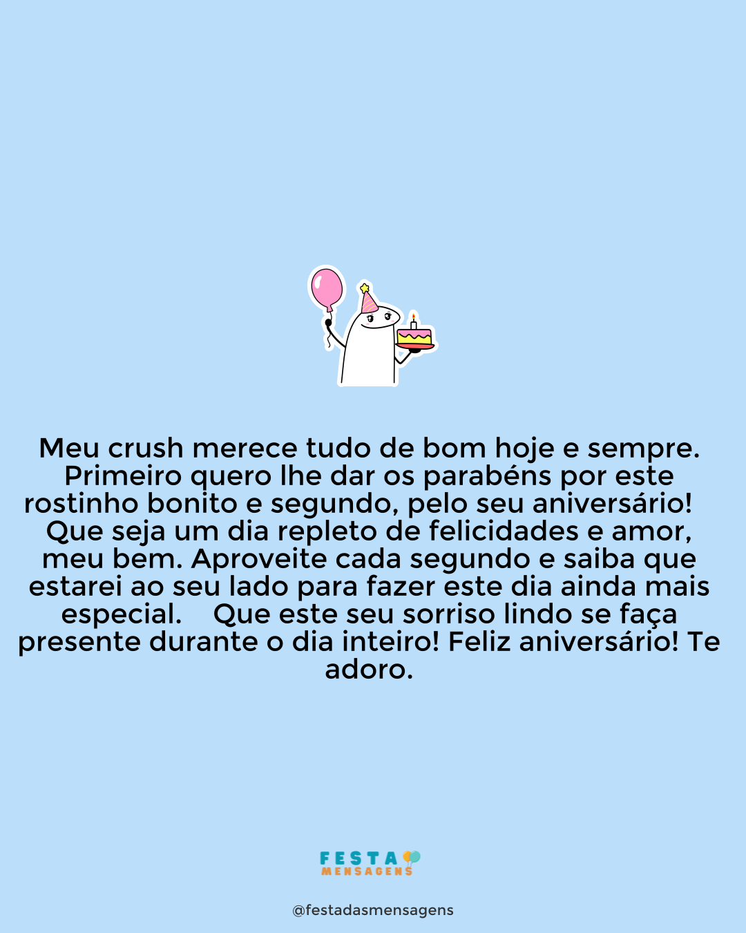 Sorria, meu filho, meu tesouro, pois hoje o dia é todo seu e tudo que eu quero é ver você feliz comemorando. Parabéns!
