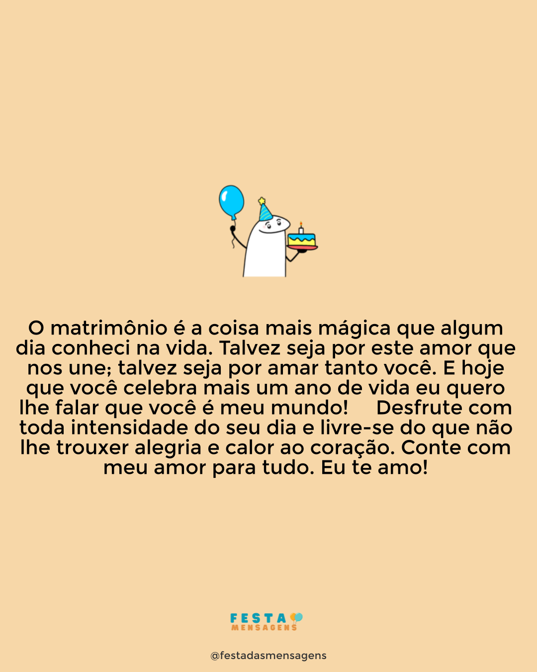 Parabéns pelo seu aniversário! Em honra de tudo que vivemos no passado eu vou sempre sentir carinho por você e lhe desejar eterna felicidade. Por isso, meu ex-maridão, seja sempre feliz e hoje curta o seu dia em grande estilo!