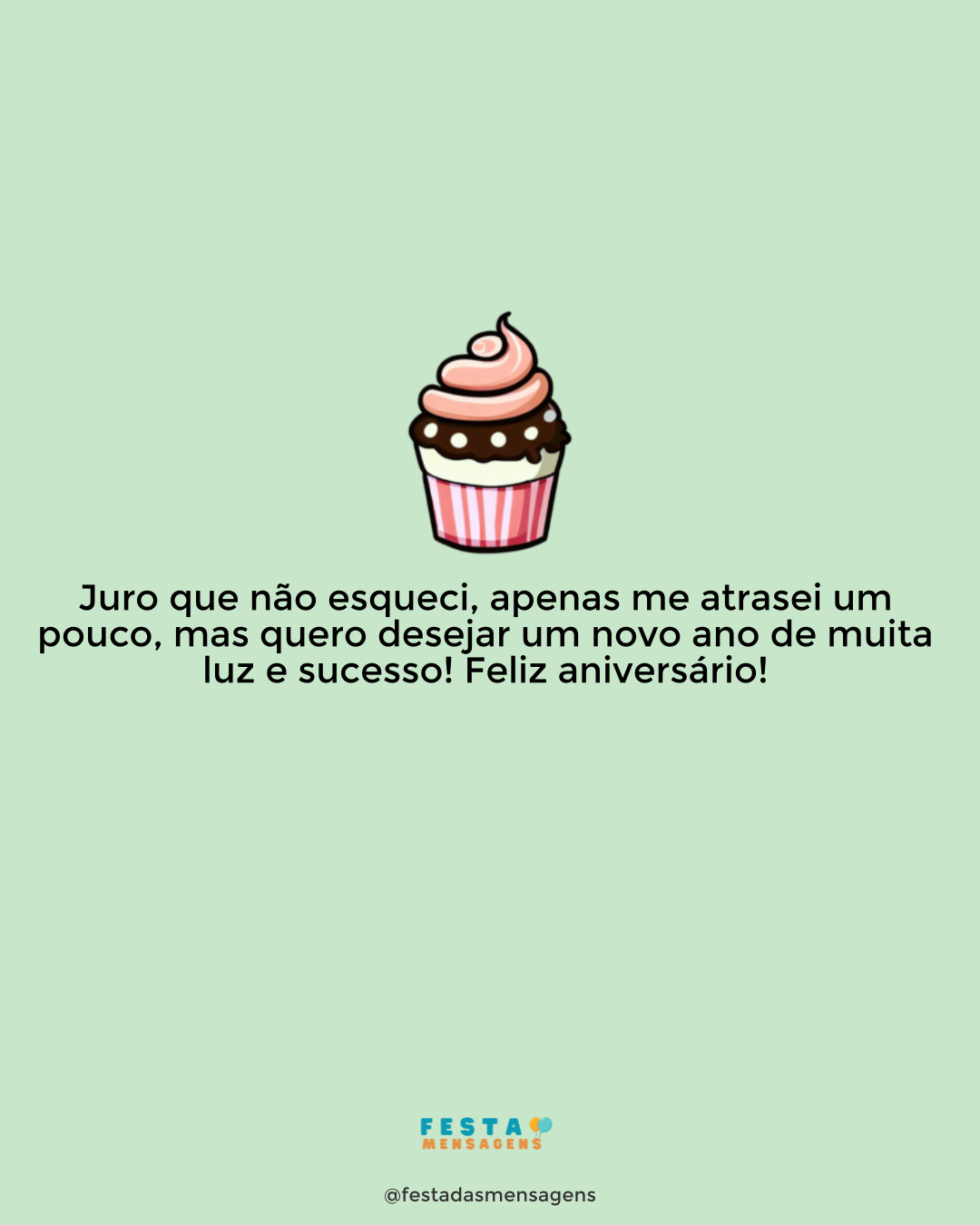 Minha querida amiga, feliz aniversário atrasado! Como lamento ter deixado passar o dia sem que a tenha felicitado. Me desculpe, meu bem. Você sabe como meus dias são ocupados, e que por vezes nem mesmo para mim eu tenho alguns minutos, pelo que facilmente me esqueço do que não desejava esquecer. Mas você sabe que jamais esqueço de você, e que mesmo na loucura dos meus dias você vive no meu coração. O meu parabéns atrasado, mas carinhoso, e muitas felicidades!