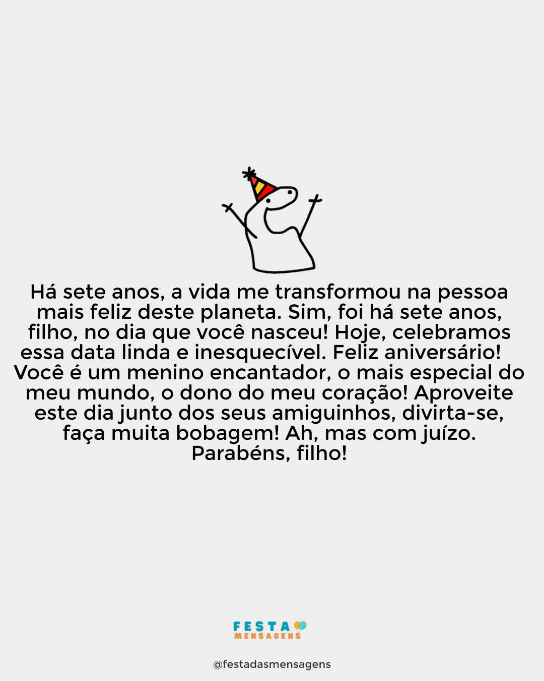Você é o grande amor da minha vida! Parabéns por completar seu quinto ano de existência neste mundo que só ganha com sua presença tão luminosa. Feliz aniversário! Desejo que este dia fique marcado para sempre pelos melhores motivos! E espero também que você continue com seu coração repleto de energia e sempre correndo atrás dos seus pequenos grandes sonhos. Você é ainda uma criança, mas está crescendo de uma forma sustentável e muito bonita! É exatamente por isso que meu coração está imensamente orgulhoso por você. Divirta-se, meu bem, e curta muito seu dia!