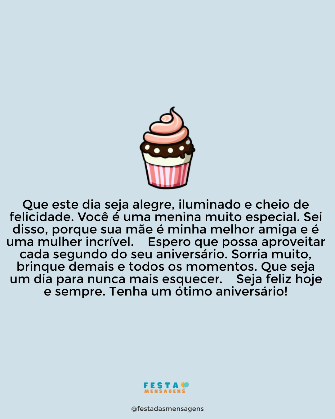 Parabéns, minha querida prima e comadre! É com grande felicidade que celebramos mais um ano da sua vida! Você é, sem sombra de dúvida, a melhor prima e a melhor comadre que podia ter. A nossa infância foi maravilhosa e hoje já não conseguiria imaginar a minha vida sem você por perto. Tenha um feliz aniversário, minha querida prima e madrinha do meu filho!