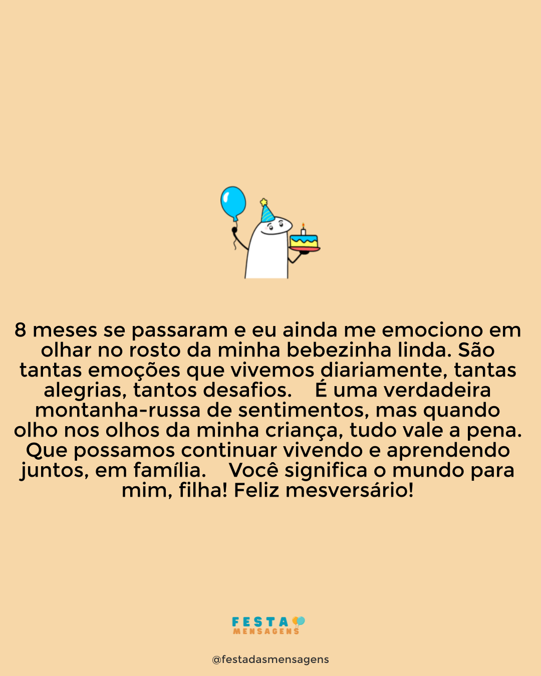 Eu nutro um carinho muito especial por você. Espero que nunca mude e que continue a amar a vida desse seu jeito especial. Parabéns! 🤗