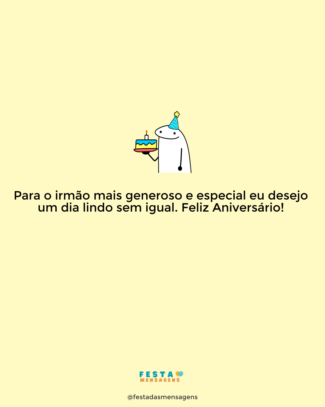 Mesmo sem lhe dar muita chance no início, hoje posso afirmar sem medo que minha irmã tem muita sorte por ter uma pessoa como você ao lado dela. Um homem de caráter e que teve muita paciência com o irmão chato e desagradável da sua querida amada. Quero aproveitar um dia como hoje para declarar todo meu respeito por você. Por ter demonstrado sempre paciência comigo, e principalmente por amar e cuidar tão bem de minha irmã. Desejo a você muitos aniversários, todos com saúde, alegria e felicidade. Que daqui para frente possamos fortalecer nossa amizade, pois pelo que eu vi você permanecerá na nossa família por um período indeterminado. Espero que sua vida seja repleta de grandes conquistas e que todo seu esforço e empenho possam ser transformados em sucesso. Que sempre consiga enxergar uma boa oportunidade e consiga tirar bons aprendizados das dificuldades. Continue sempre esse cara responsável, corajoso e principalmente fiel, porque se um dia souber de alguma escapada, acho melhor nem dizer o que vai acontecer para não ficar assustado. Desejo a você tudo de bom e que tenha um feliz aniversário! Parabéns, cunhado!