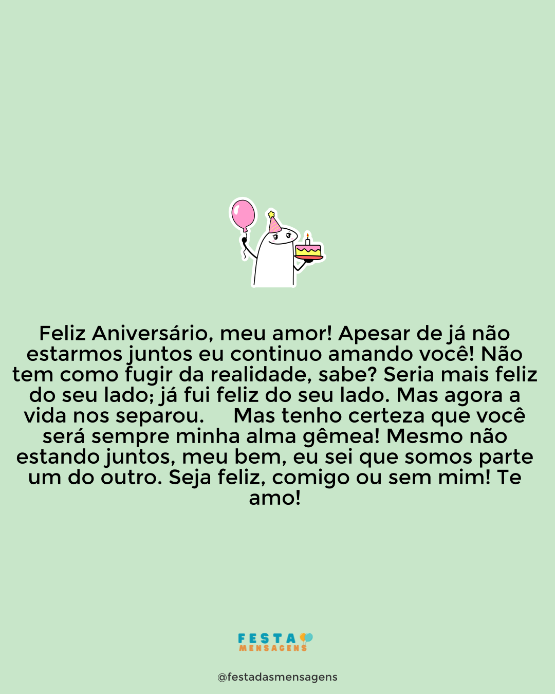 Todos os anos tento transmitir em palavras diferentes todo o amor que sinto por você. Estamos juntos há tanto tempo e mesmo assim sempre tenho algo novo para escrever. Toda minha vida procurei uma mulher com suas qualidades, mas quando conheci você nunca imaginei que alguém teria o poder de superar todas as minhas expectativas. E a única pessoa que conseguiu tal feito até hoje foi você. Com sua presença minha vida enfim ficou completa. Você é a personificação dos melhores sentimentos, todos juntos sendo liberados por uma só mulher. Suas qualidades são infinitas, todos os dias você consegue sorrir de uma forma diferente, demonstrar afeto com um novo gesto. E tudo isso só me faz cada vez mais apaixonado e certo de que sou o maior sortudo do mundo e que fiz a escolha certa. Que seu dia possa ser melhor que todos os aniversários anteriores, que eu possa descrever meus sentimentos por você ainda por muitos e muitos anos, e que conforme nossa vida for passando nosso amor nos una cada vez mais. Que nunca lhe falte saúde, pois é a única coisa que eu não tenho o poder de lhe dar, porque felicidade, alegria e amor já estão garantidos por mim para o resto da sua vida. Parabéns Amor!