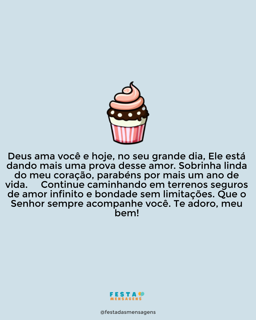Hoje você está completando 17 anos de vida. Espero que sua caminhada até aqui tenha sido repleta de sorrisos e alegrias. Desejo que seu aniversário seja de uma felicidade plena e que você possa olhar para trás e se orgulhar de tudo que viveu até aqui. Sua jornada está apenas começando e agora é o momento de trilhar seus próprios passos. Nunca esqueça dos seus sonhos e corra atrás daquilo que você mais quer para seu futuro. Você é uma pessoa incrível e o sucesso só depende de você! Feliz aniversário!