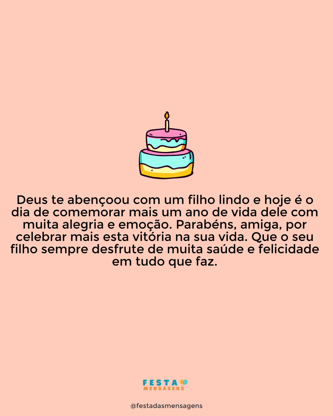 Você é minha mãe, mas também a rainha do meu coração, e neste dia especial que é seu aniversário, não sei que presente lhe dar. Pois a melhor coisa que existe neste mundo você já tem, e é o coração que bate dentro do seu peito. E como é um coração generoso, com infinito amor para dar e para mim é o melhor presente que Deus me deu. Você é a melhor mãe do mundo, e mais não posso pedir, apenas que Deus lhe conceda muitos anos de vida, sempre felizes e abençoados. Parabéns, mamãe! Que este dia seja maravilhoso e as maiores alegrias abracem hoje seu coração para nunca mais o soltarem. Eu amo muito você e quero apenas que seja muito feliz.