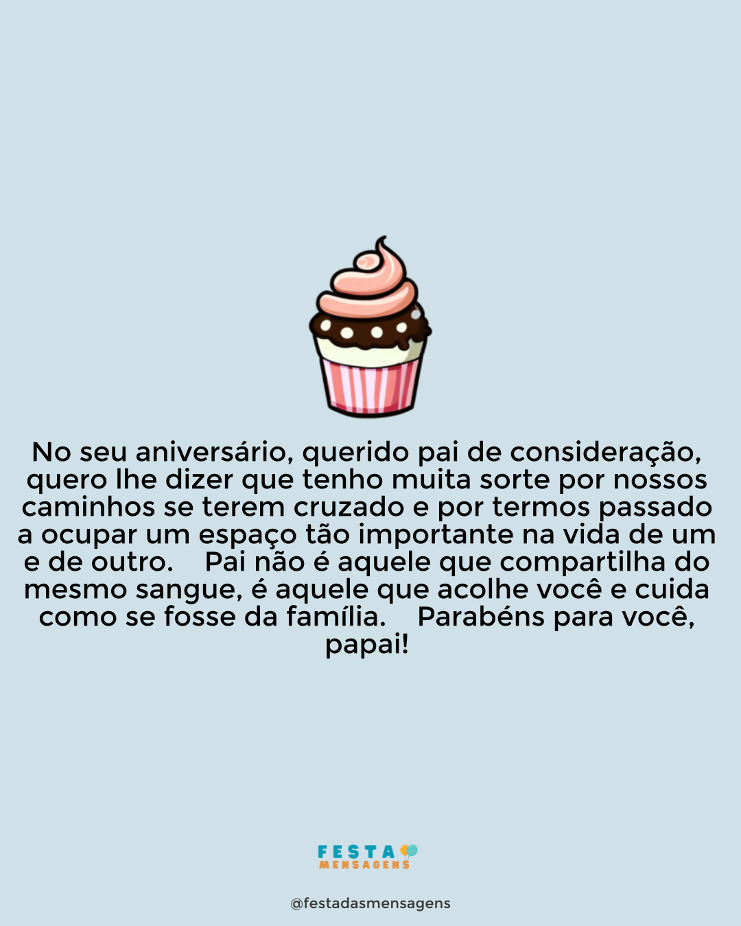 Eu sei que nossas decisões acabaram nos afastando ao longo dos anos, mas este dia é seu e eu espero que possa celebrar e ser feliz. Mesmo que não possamos nos ver, de longe, desejo tudo de bom Você é e sempre será o meu pai e é por isso que torço pelo seu sucesso, alegria e felicidade. Parabéns, pai! Estou pensando em você.
