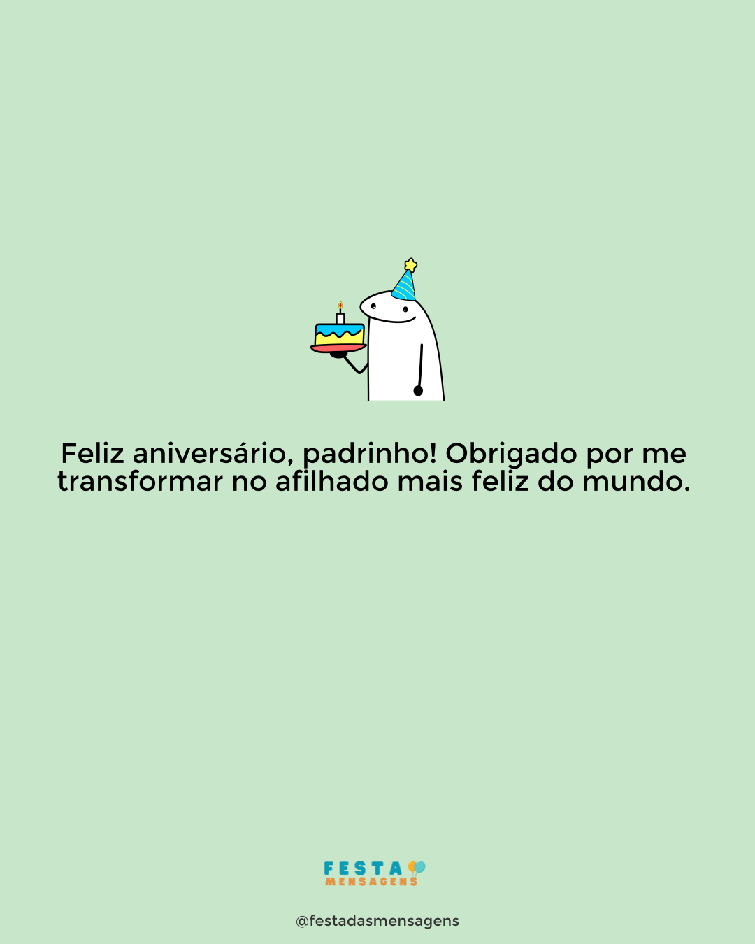 Um padrinho como você merece ser feliz todos os dias, especialmente no seu grande dia. Meu querido, parabéns pelo seu aniversário!