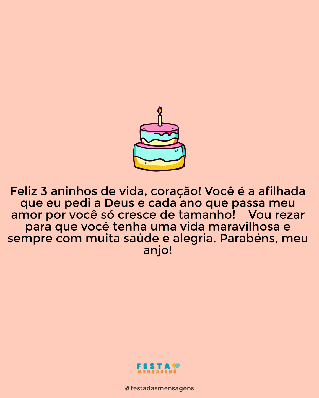 Hoje é o seu aniversário, então pare, pense, descubra o efeito da felicidade, sinta em você um florescer constante, utilize toda sua força para simplificar sua vida, não encoste no passado sem respostas, e esteja sempre atenta ao presente. Você pode enfraquecer pela luta, mas nunca se considere por vencida; busque a alegria que esta dentro de você. Você tem o poder para modificar o que precisa ser mudado, confie na sua capacidade, ponha os seus projetos em andamento. E nesse dia tão especial, onde as emoções fluem naturalmente, todas as energias positivas estão voltadas para você. As coisas boas que eu lhe desejo não caberiam em simples folhas de papel, pois a cada dia que compartilho com você é um grande prazer desses que só o coração pode guardar. Que Deus abençoe você sempre, para que eu possa me orgulhar de você, minha prima. Parabéns!