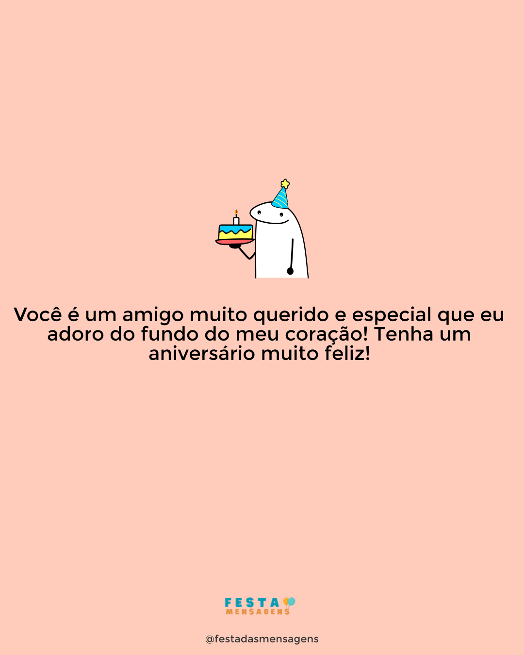 Parabéns, querida! Eu estou muito feliz porque você completa hoje mais um ano repleto de aventuras para mais tarde recordar. Você é uma amiga incrível, um pouco chata – é verdade, mas muito especial! Estou torcendo com todas as minhas forças para que esta data fique marcada na sua memória para sempre. Espero que se divirta muito e que receba todos aqueles presentes que deseja secretamente. Eu estou e sempre estarei ao seu lado. Nossa amizade é verdade, pura, intensa, por isso, nunca duvide que estarei junto quando precisar. Amiga, tenha um aniversário maravilhoso!