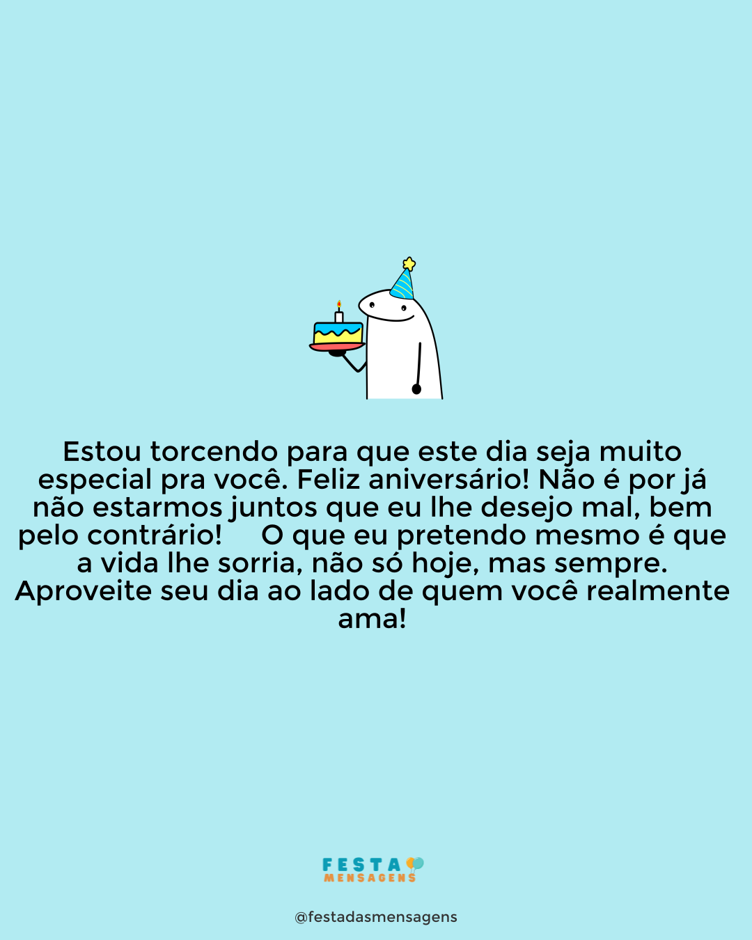 Hoje é um dia para celebrar a vida e todas as maravilhas que ela tem a oferecer! Feliz aniversário! Saiba que você é mais do que um familiar, um parente; você é parte de mim, alguém que eu admiro profundamente. E talvez seja exatamente por isso que eu desejo que esta nova etapa da sua vida seja repleta de saúde, amor e felicidade. Ah, e que você sempre encontre motivos para sorrir, forças para vencer desafios e pessoas especiais ao seu redor. Isso sim é importante! Aproveite cada instante e nunca deixe de acreditar nos seus sonhos.