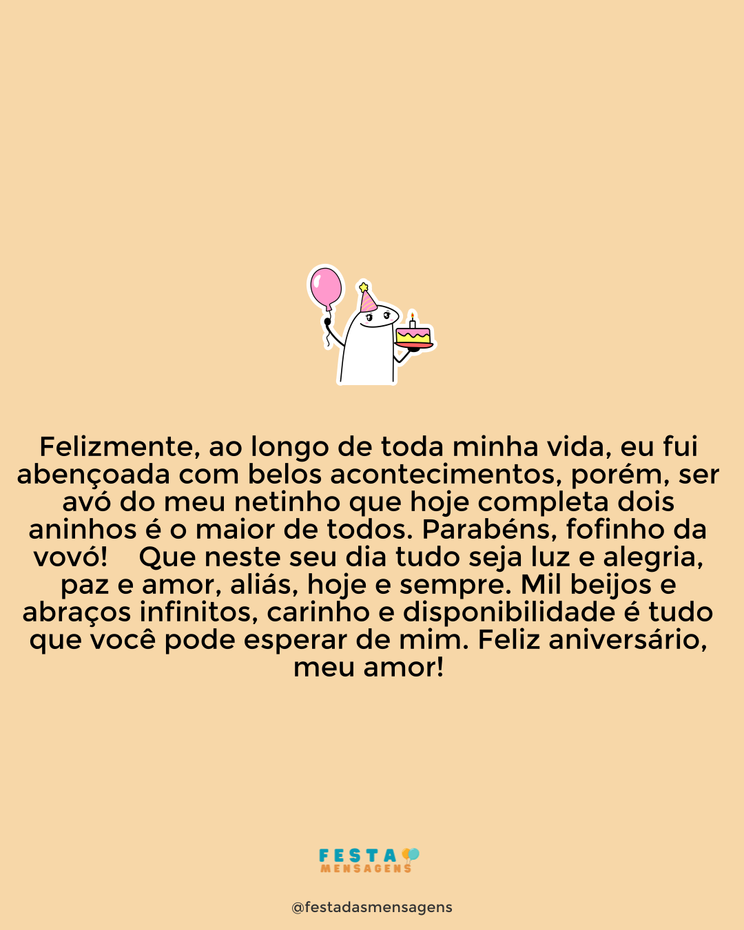 Parabéns, meu querido! Desde que você nasceu, meu coração bate mais forte. Desejo quie sua vida seja repleta de felicidade, sonhos lindos e muito, muito amor!