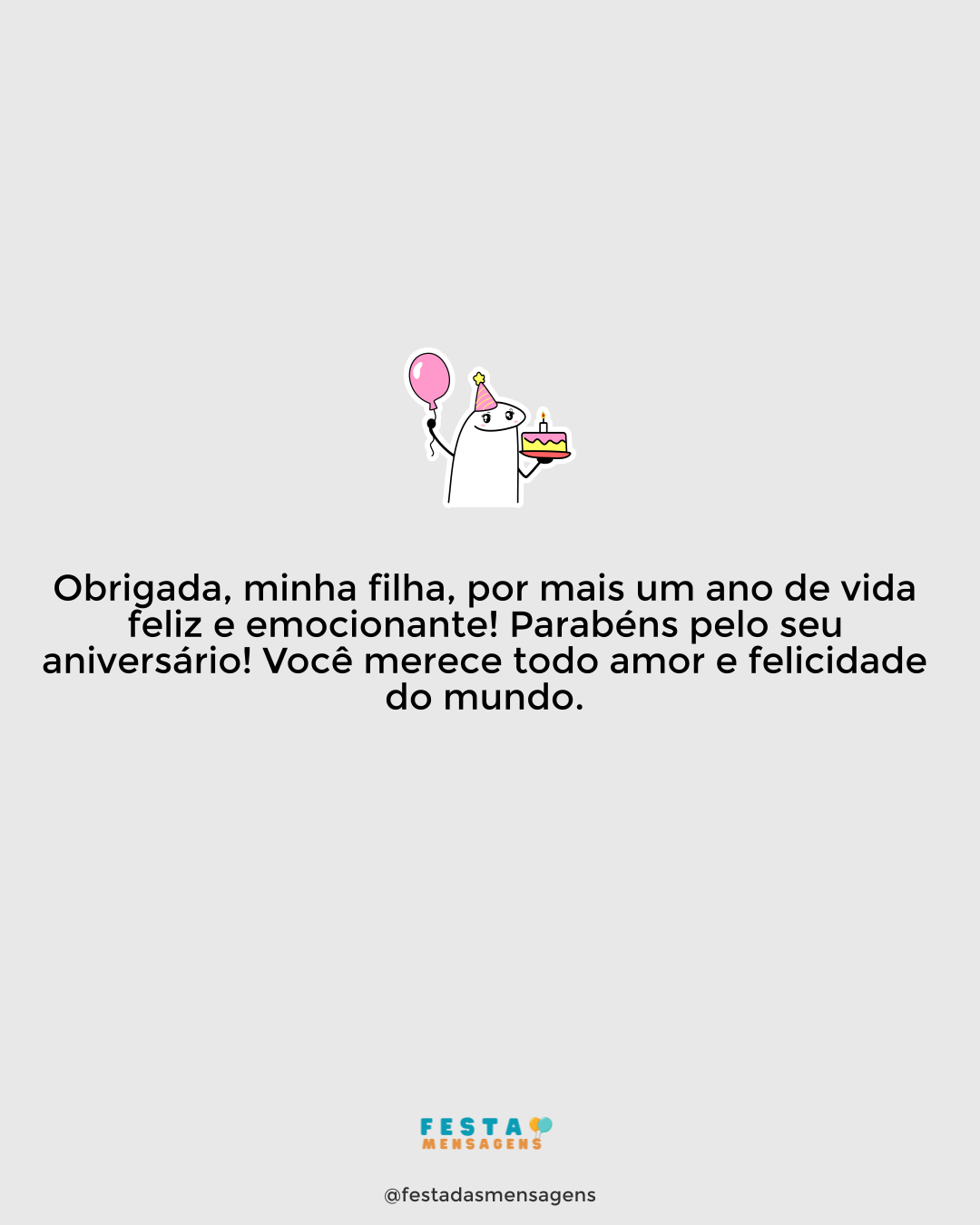 Feliz Aniversário, minha mãe! Você é a pessoa mais importante da minha vida, a mulher que mais toca no meu coração. Sinto que juntas somos capazes de qualquer coisa, que nada é proibido. Minha mãe de coração, você é minha heroína, meu ídolo, meu ícone feminino. Gostaria de ser igual você no futuro; de ter sua generosidade. De amar e educar uma filha do jeito que você fez comigo. Amo você todos os dias, mamãe! Beijo.