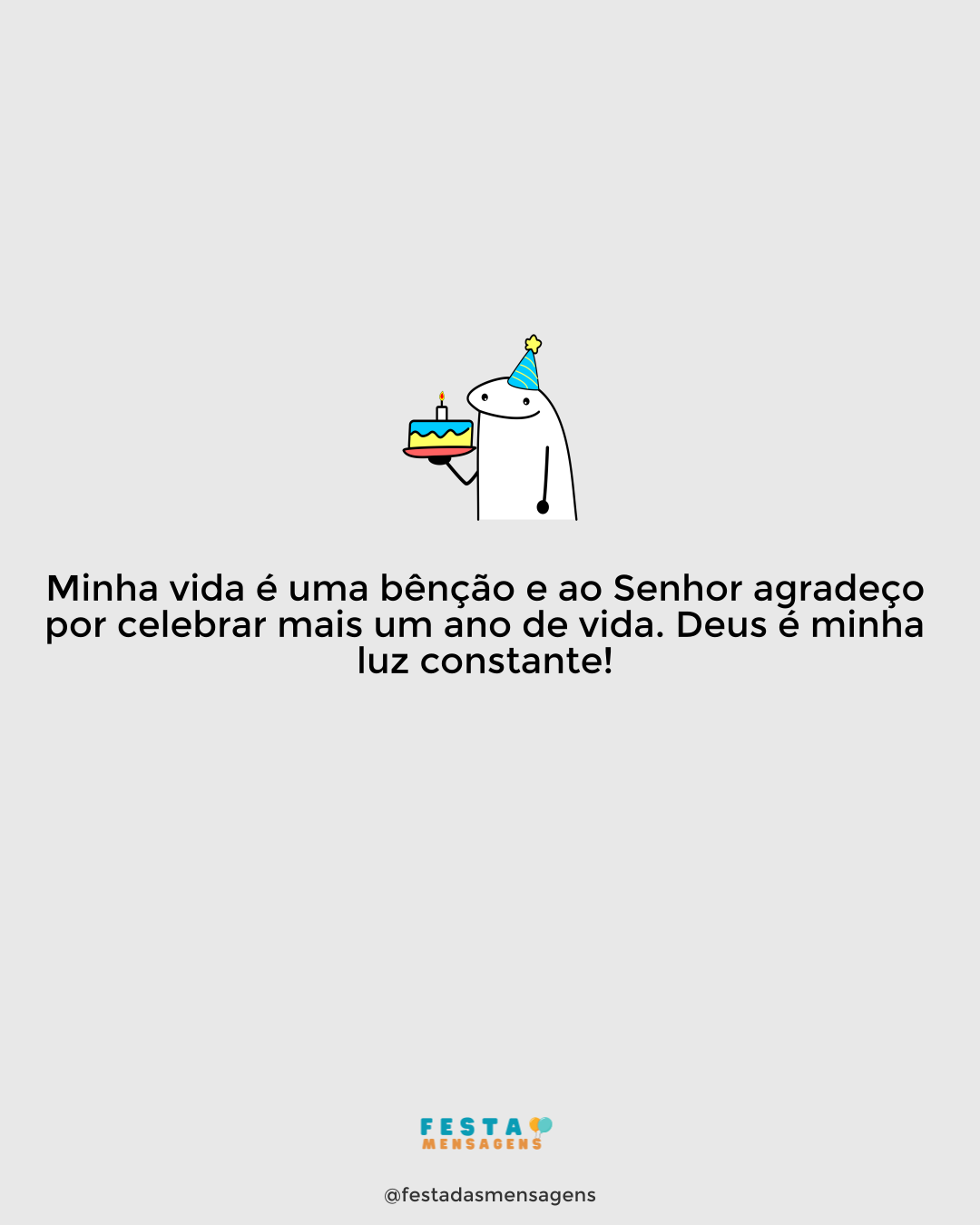 Parabéns a você por um ano de vitórias, mesmo quando a dificuldade se erguia na sua vida. Você merece ter um aniversário muito feliz! 🍰