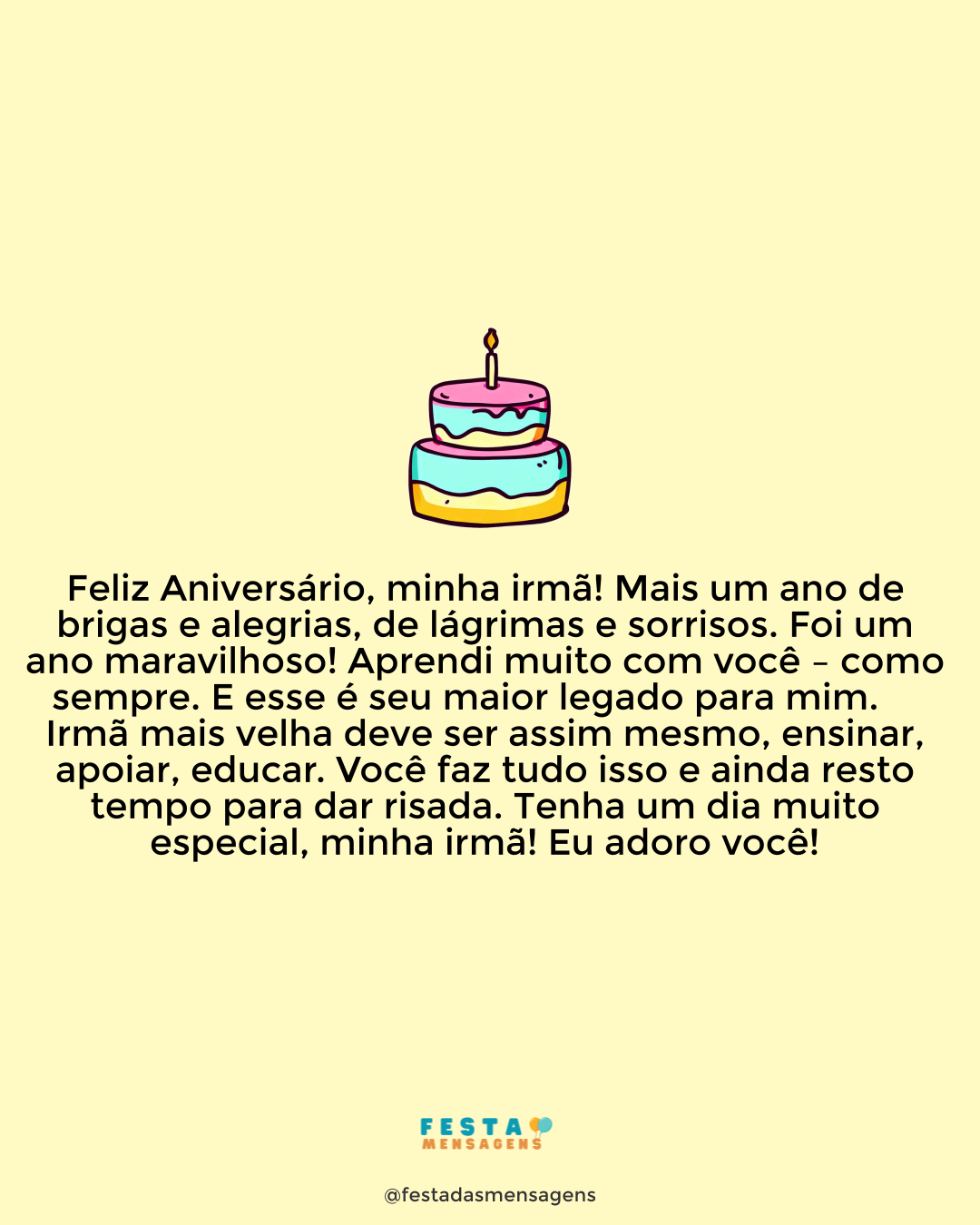 Feliz aniversário, filha, amiga e luz da minha vida. Tudo que eu faço todos os dias é por você, mas hoje farei em dobro, pois quero ver seu sorriso dominando esta casa. Entre nós não há segredos pois sinto que meu amor por você não é somente de mãe para filha, é também entre duas amigas que se entendem plenamente e estão sempre dispostas a fazer o impossível uma pela outra. Filha, você foi o maior presente que já recebi na vida e ver você crescendo e se tornando esta mulher incrível enche meu coração de orgulho. Tenha um dia abençoado e repleto de felicidades. Amo muito você!